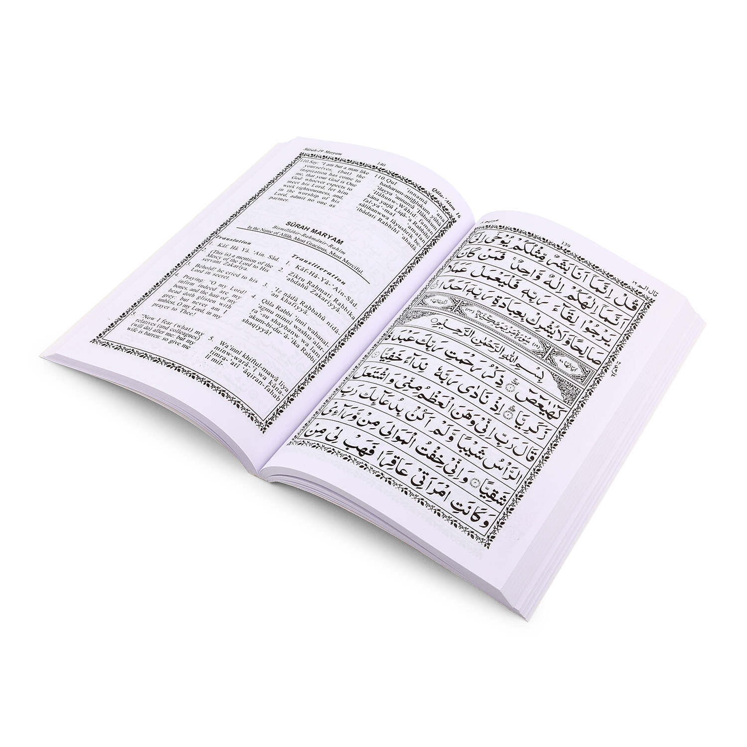 - Arabic text with Roman Urdu pronunciation and English translation.
