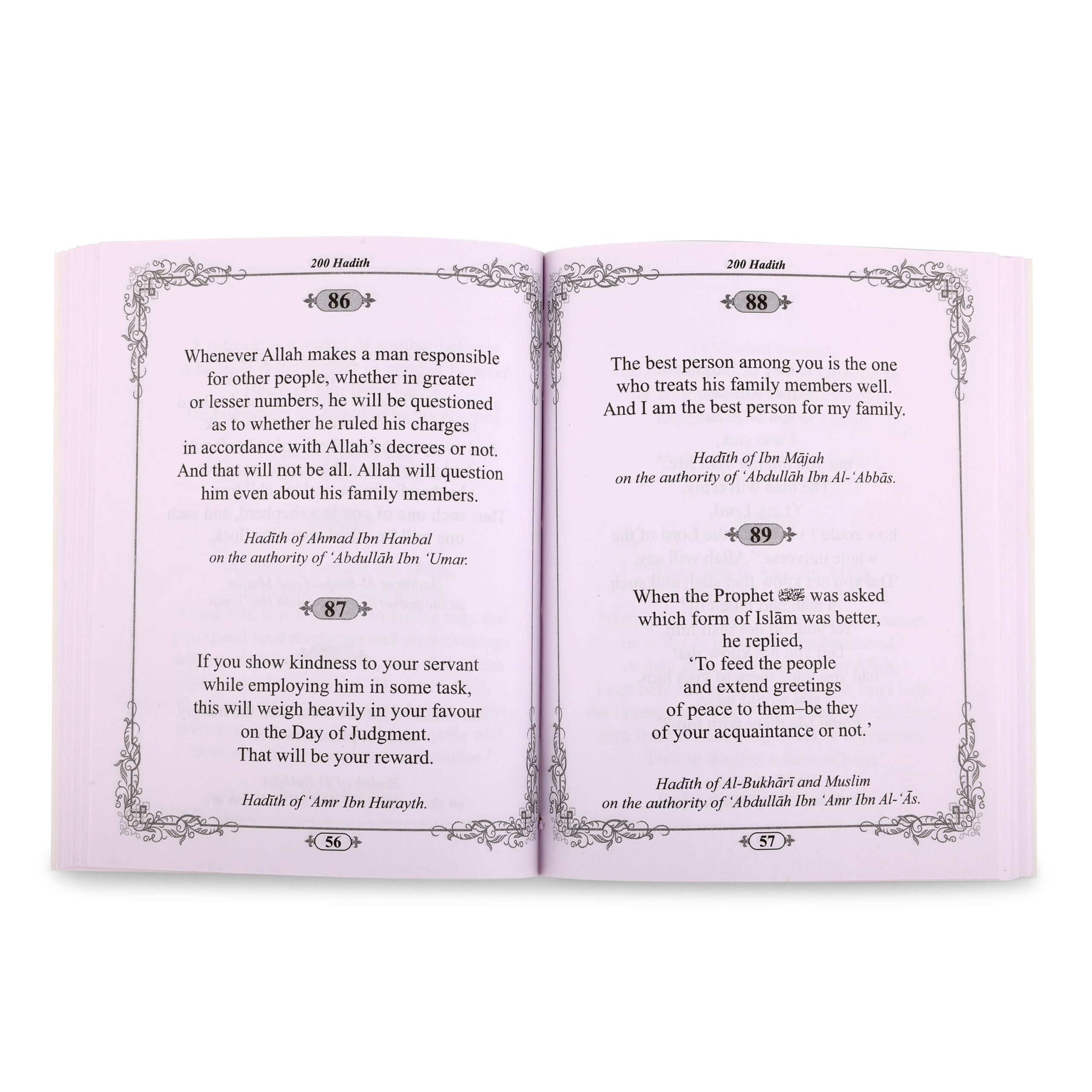 - 200 authentic Hadiths from Bukhari, Muslim,Tirmidhi & other major sources.