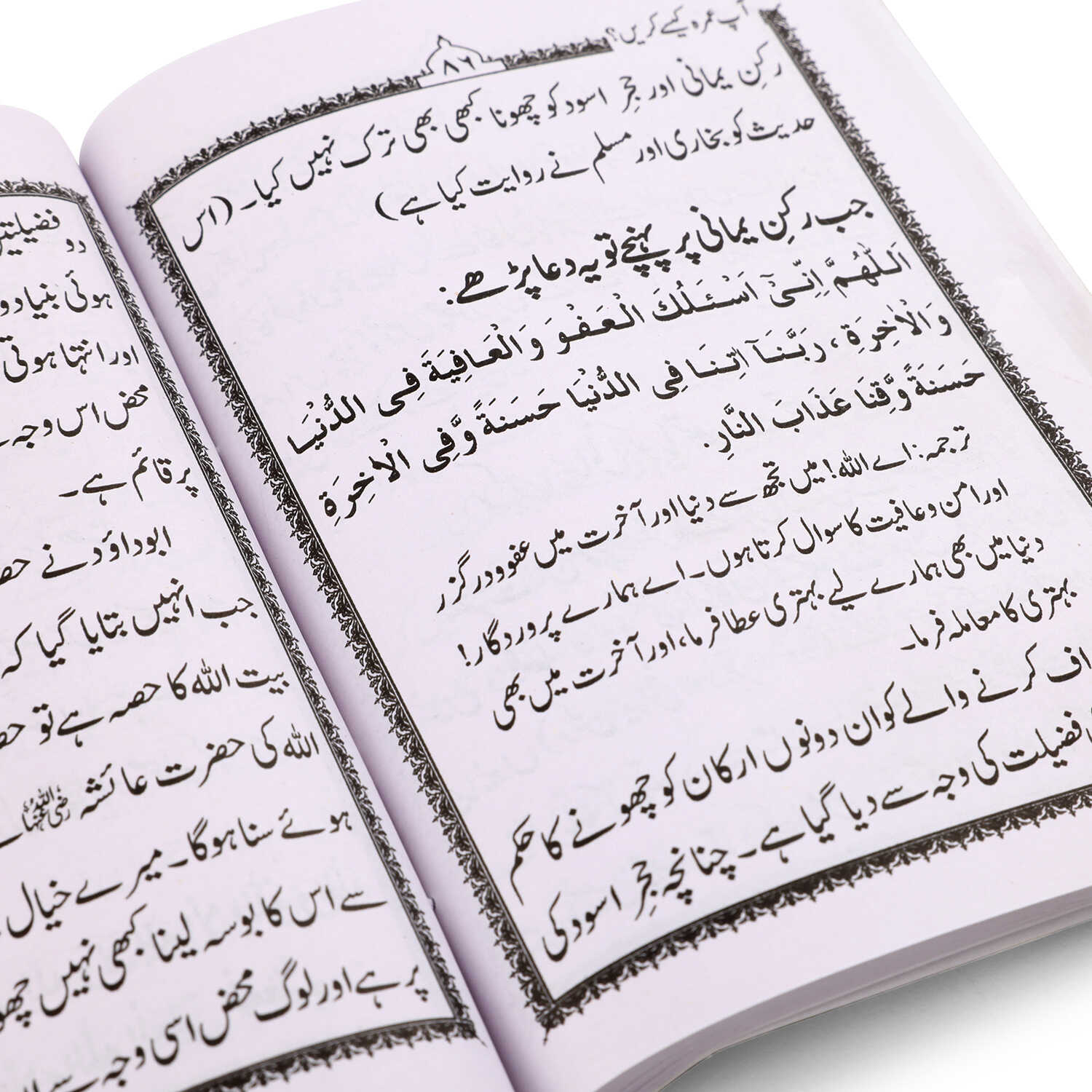 - Compact Urdu guide with complete Umrah procedure, key rituals, and essential duas.