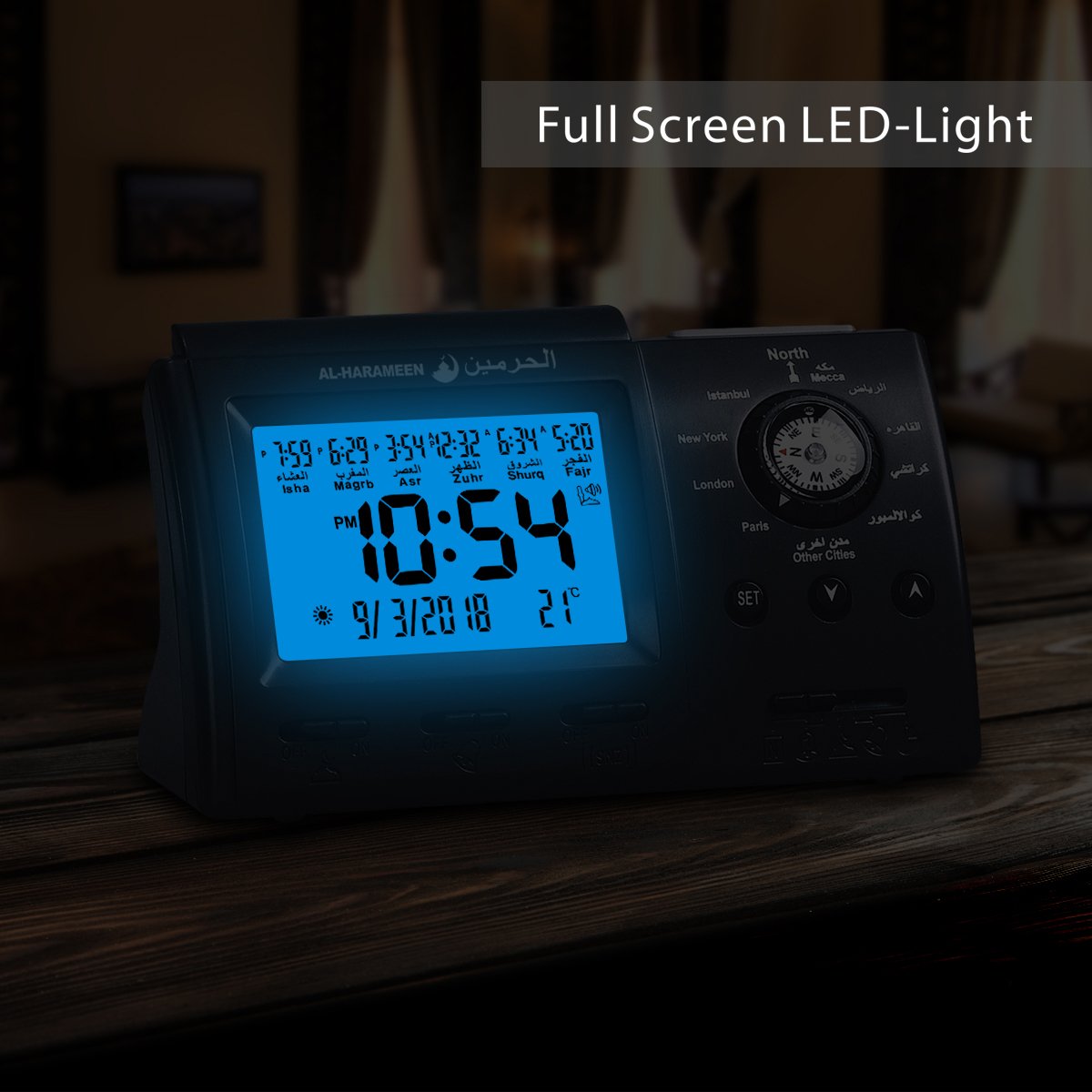 Al Harameen Azan Clock & Qibla Compass (HA-3005) - Stylish & Functional Prayer Companion