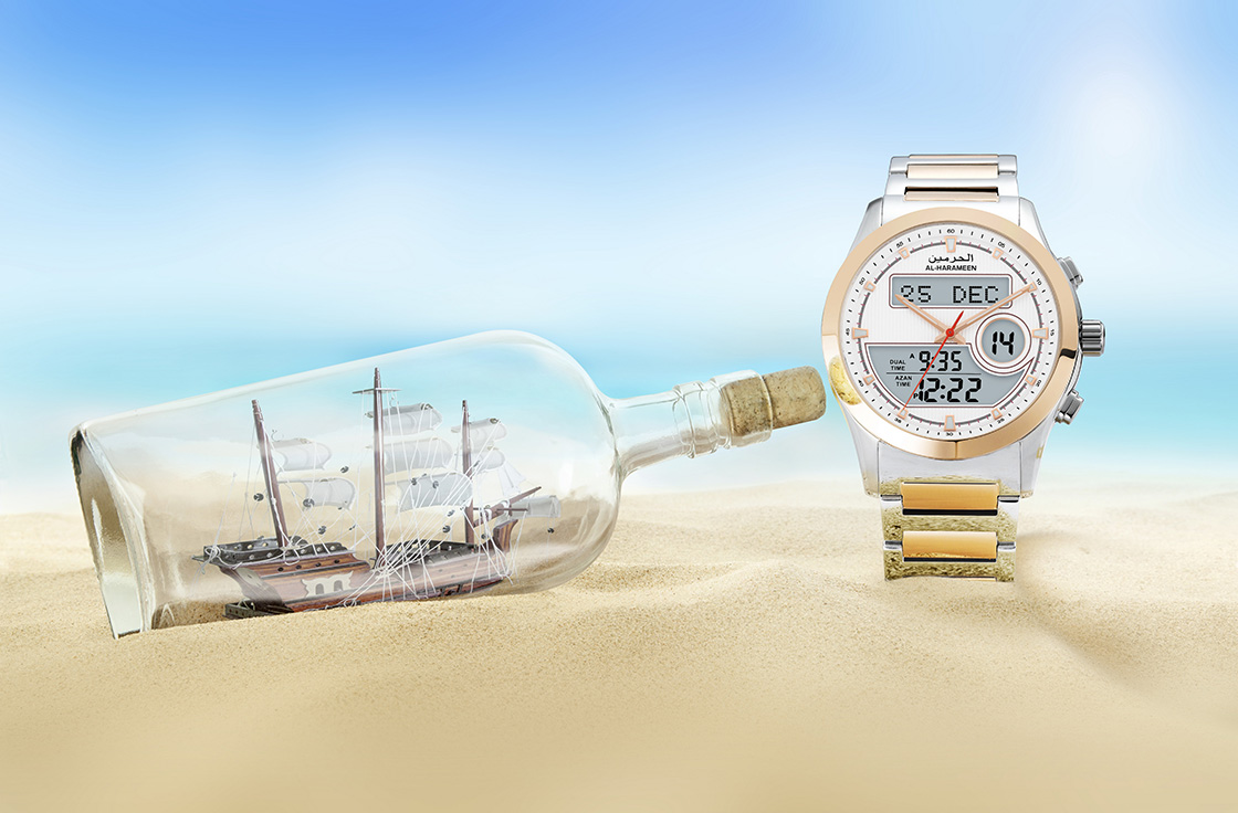 Al Harameen Delux Digital Azan Watch With Automatic Qibla Compass HA-6101SRW