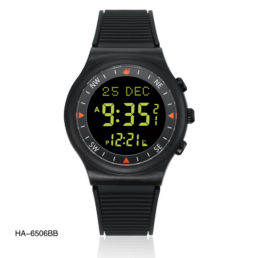 Al Harameen Digital Azan Sports Watch With Automatic Qibla Compass HA-6506BB Al Harameen Digital Azan Sports Watch With Automatic Qibla Compass HA-6506BB Features * Prayer Reminder – Azan time for most of the cities* Water-resistant (waterproof)* Easy Set