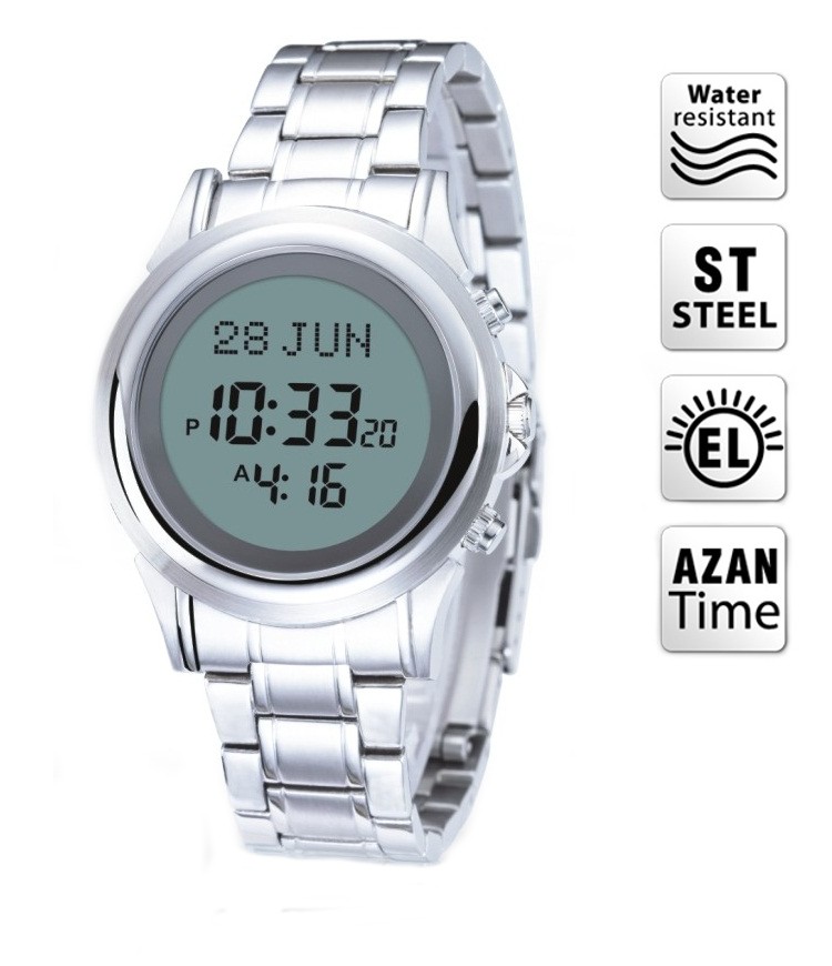 Azan Wrist Watch with two language (English & Arabic) including Qibla direction and also shows the Azan time for most of the cities in India.