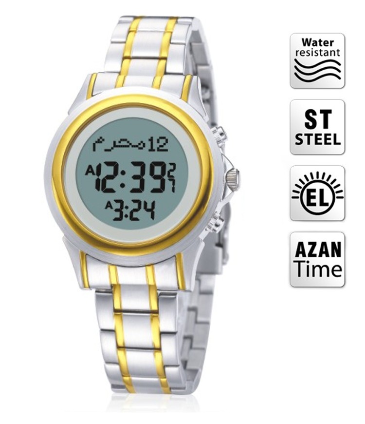 Azan Wrist Watch with two language (English & Arabic) including Qibla direction and also shows the Azan time for most of the cities in India.