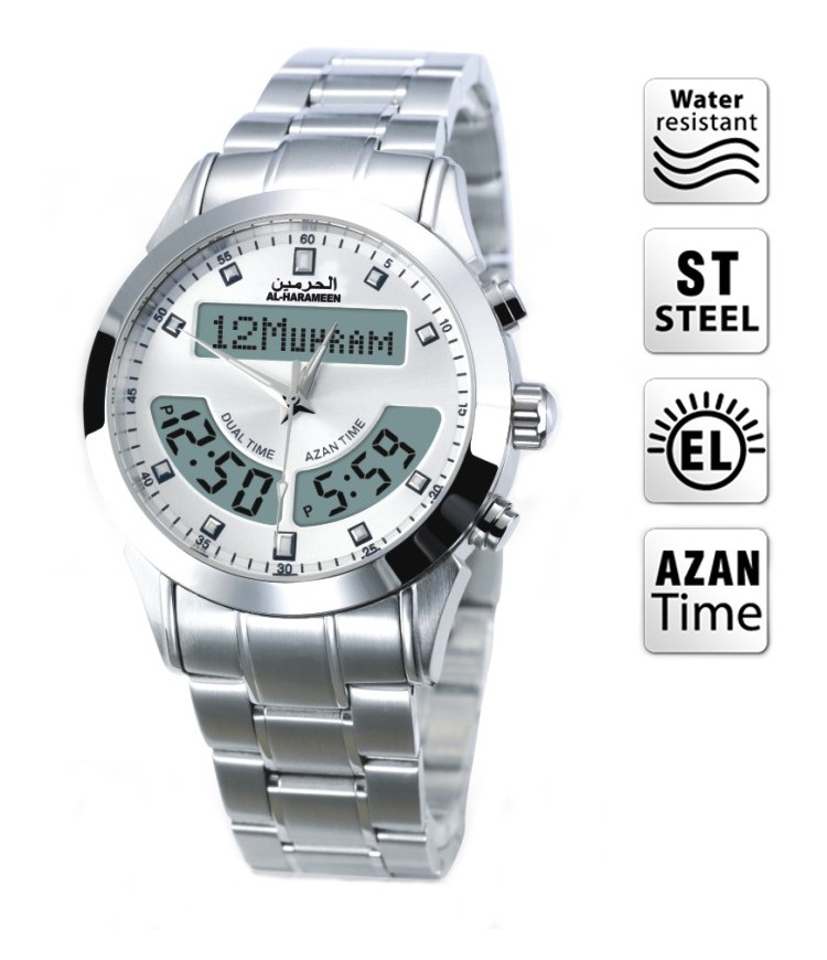 Azan Wrist Watch with two language (English & Arabic) including Qibla direction and also shows the Azan time for most of the cities in India.