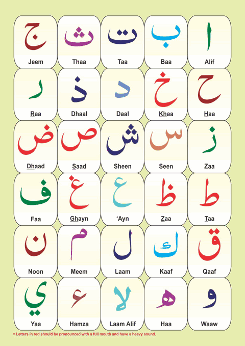 - A5 Size, Colourful Arabic alphabet chart for beginners