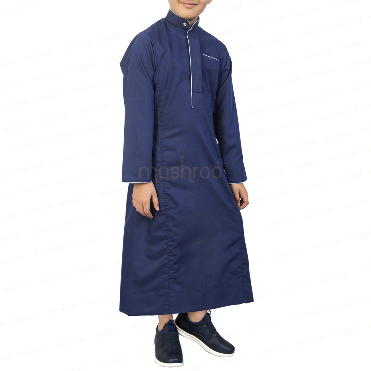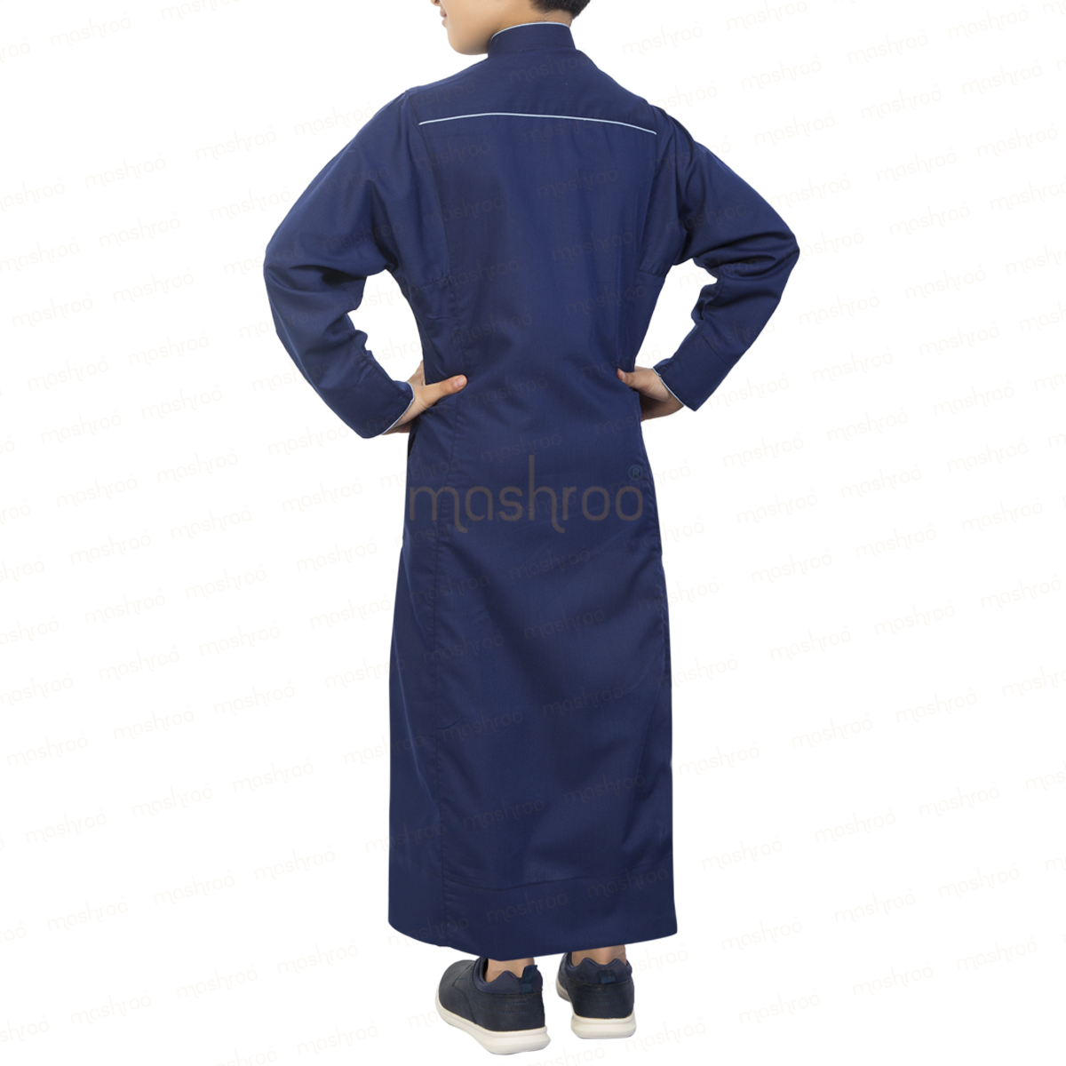 Dipped in sky blue details over the tidy navy blue design, Ashfak Thobe is tailored using 100% cotton and is a commendable blend of class and casual appearance. With its quality fabric and distinct selection of colors, the designer thobe proves to be an unmatched attire for casual outings and semi-formal gatherings.