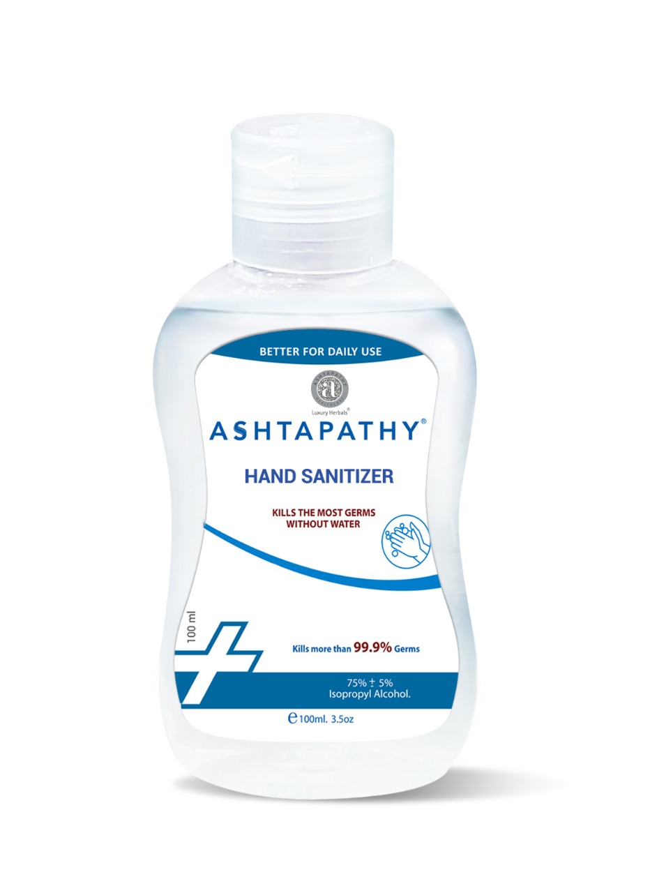 Ashtapathy Hand Sanitizers are made with 75% Isopropyl Alcohol, which effectively kills 99.9% germs without water. Use Ashtapathy Hand Sanitizer to protect transference of germs from your hands anytime, anywhere without Soap or Water