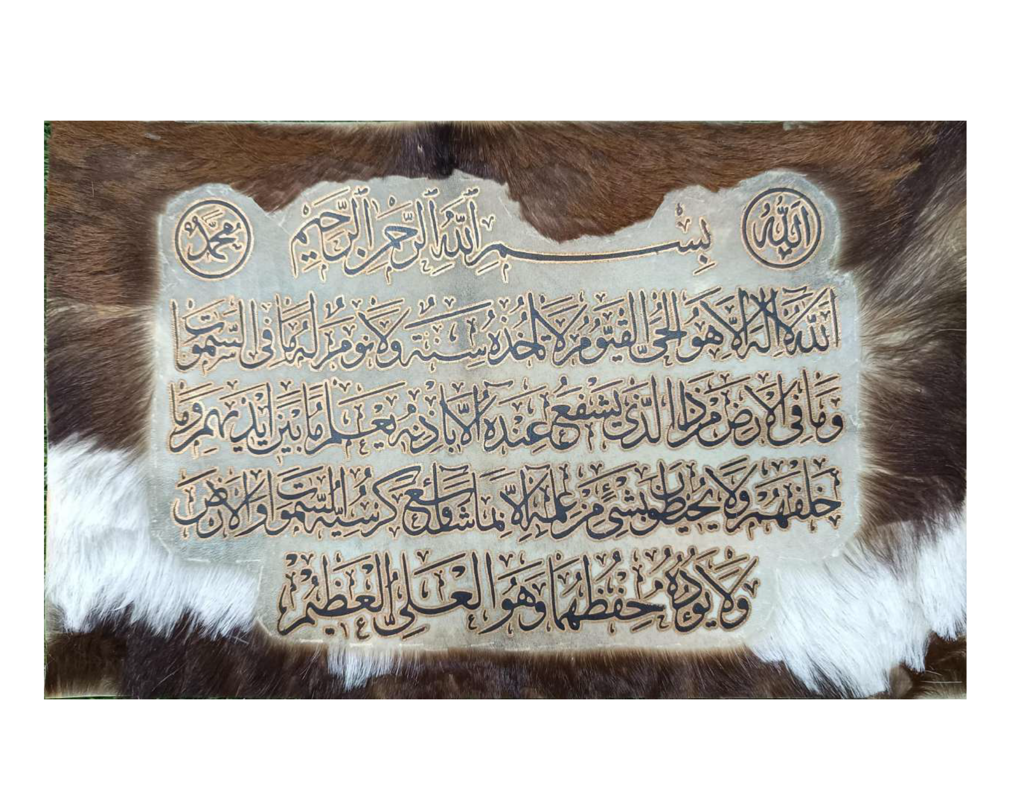 Ayatul Kursi on Goat Skin (Small) is a beautifully handcrafted piece of Islamic art that combines spirituality and artistry. This exquisite artwork features the powerful and protective verse, Ayatul Kursi, intricately inscribed on authentic goat skin. Its natural texture enhances the timeless elegance of the Quranic verse, making it a meaningful addition to your home or workspace.