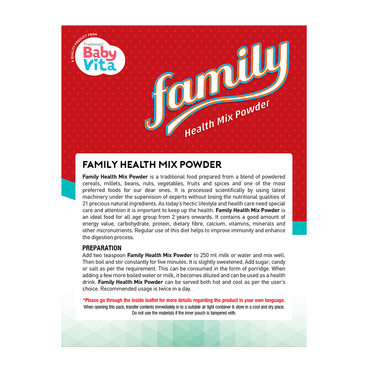 In today’s fast-paced lifestyles, prioritizing health is crucial. Babyvita Family Health Mix Powder is a rich source of essential nutrients, making it an ideal dietary option for individuals of all age groups. Consistent consumption contributes to overall health and well-being, making it an essential addition to your family’s nutritional routine.