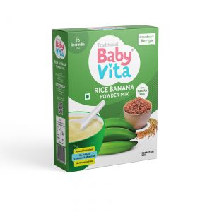 To savor the rich taste and nutritional benefits, add two teaspoons of Traditional Babyvita Rice Banana Powder Mix to a glass of milk or water. Mix thoroughly and boil while stirring continuously for five minutes until you achieve a smooth paste. With a mild sweetness, you can customize the taste by adding sugar, candy, or salt according to your preference. Serve lukewarm for a delightful treat.
