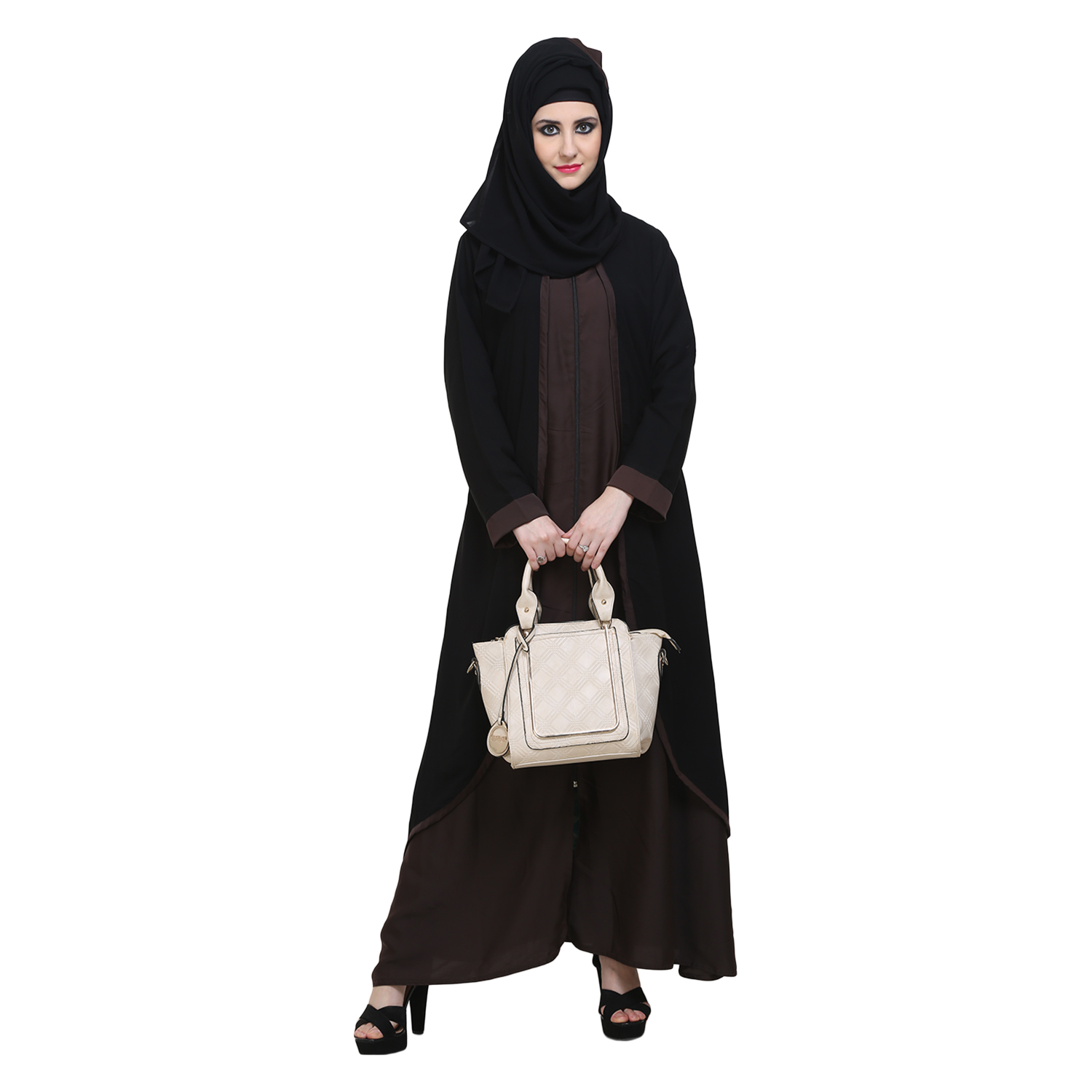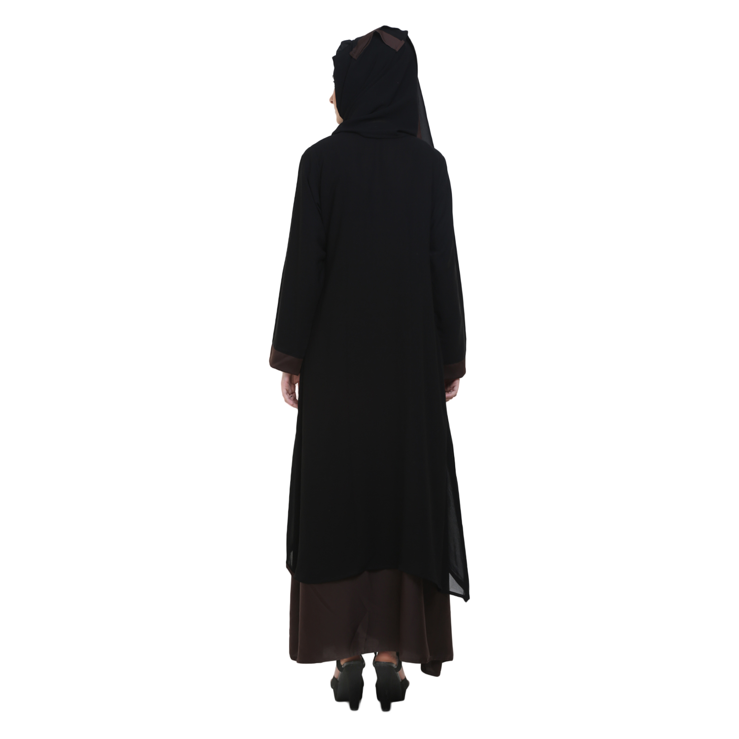 Black & Coffee Nida Double Layer Zipper Front OpenFormal Abaya