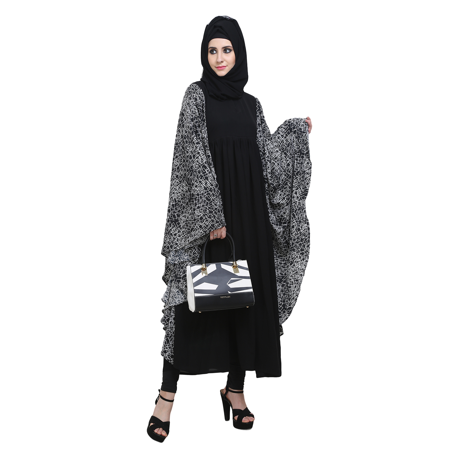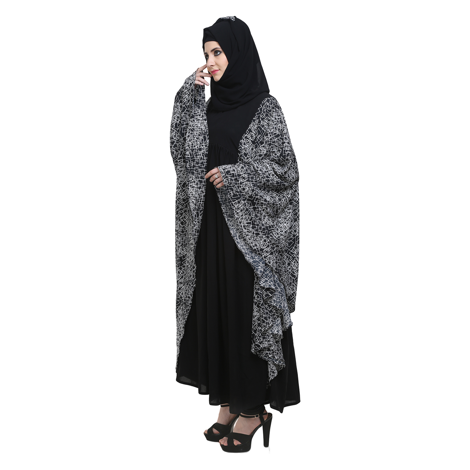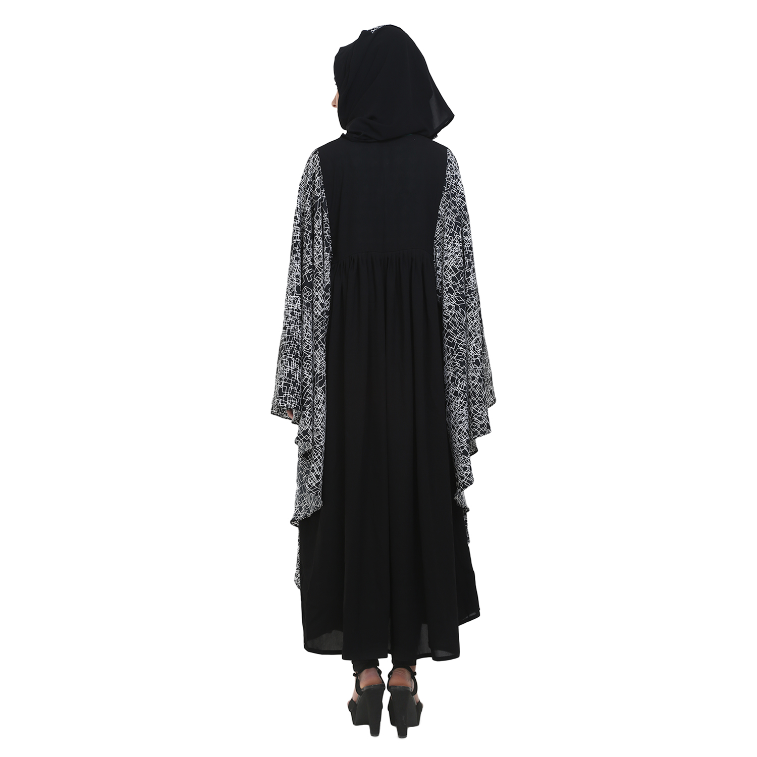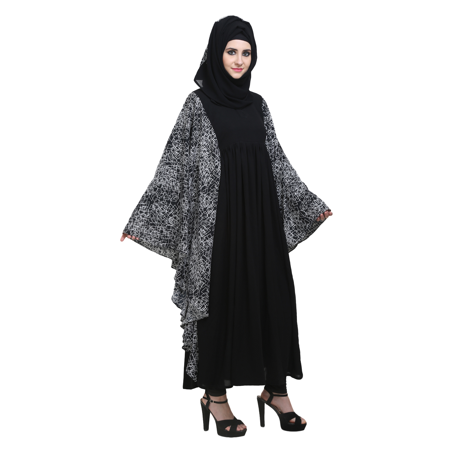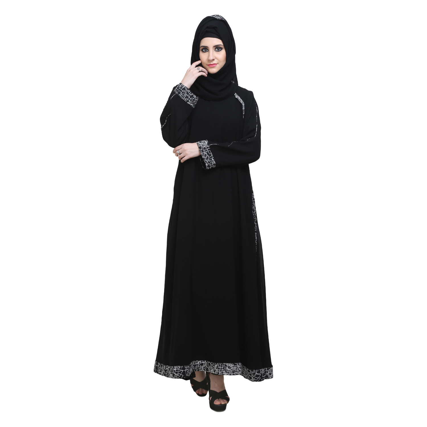 Black Crepe Printed Fabric kaftaan Style Abaya