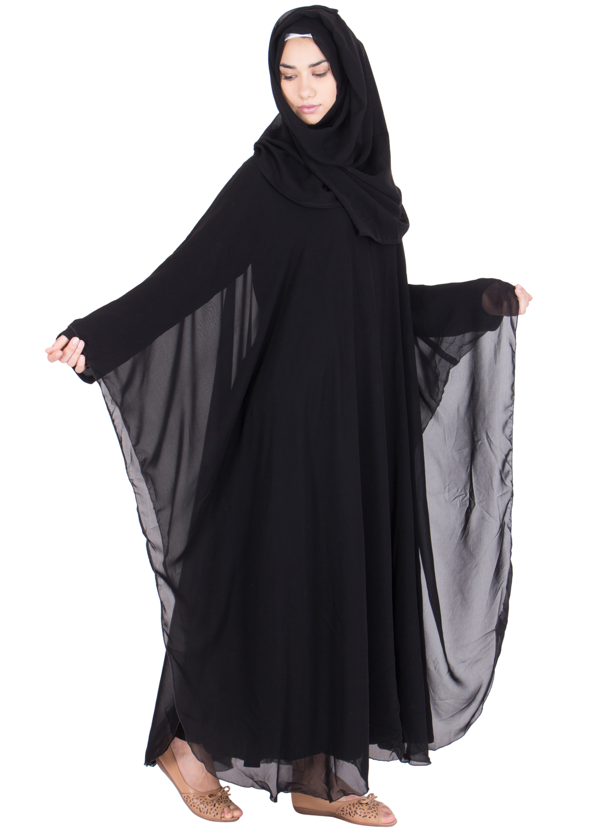 This trendy look Double Layered kaftaan Style Abaya is prepared of usiing Crepe & Georgette Fabric. A must have an iten carries through all the session. Matching Hijab is included.