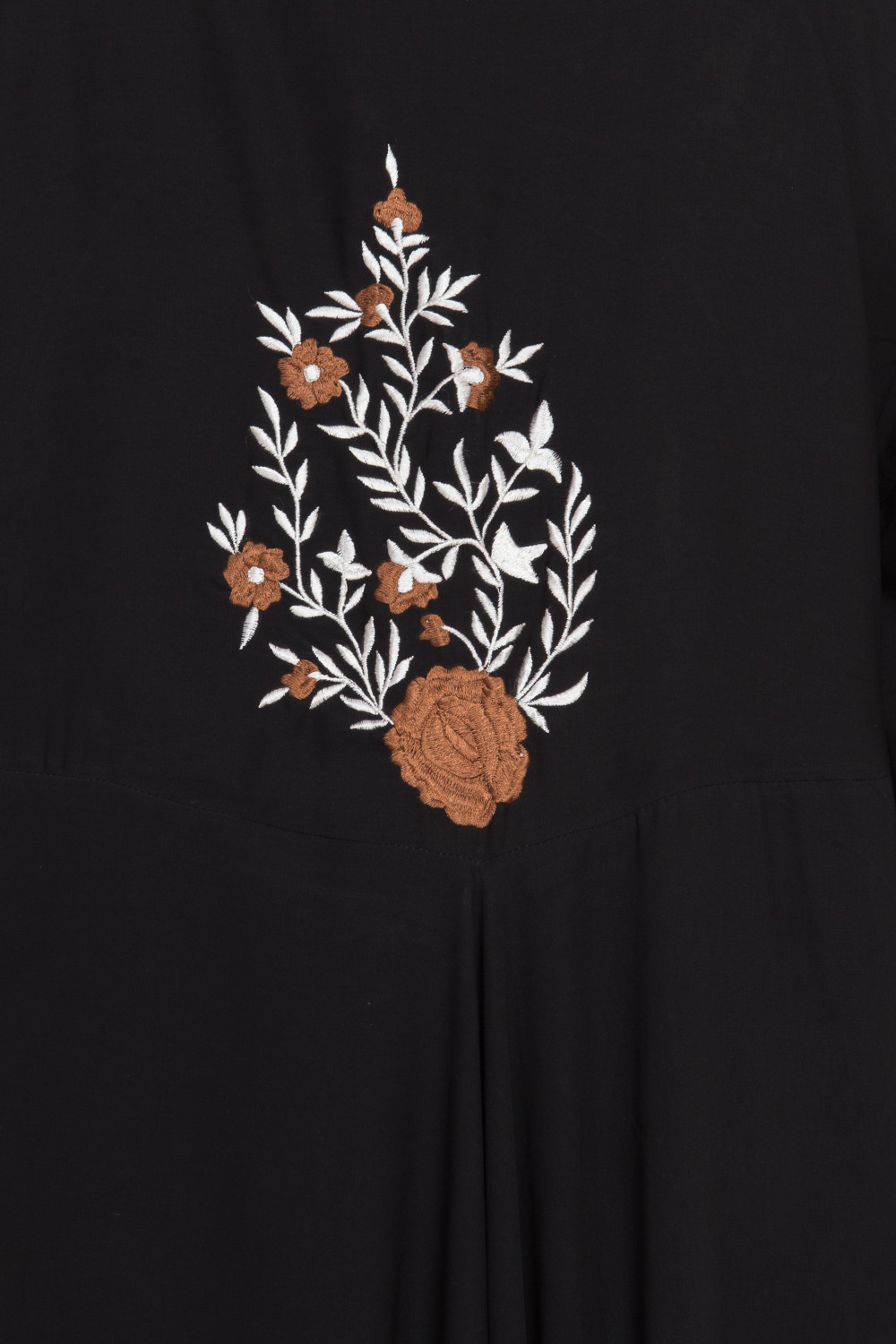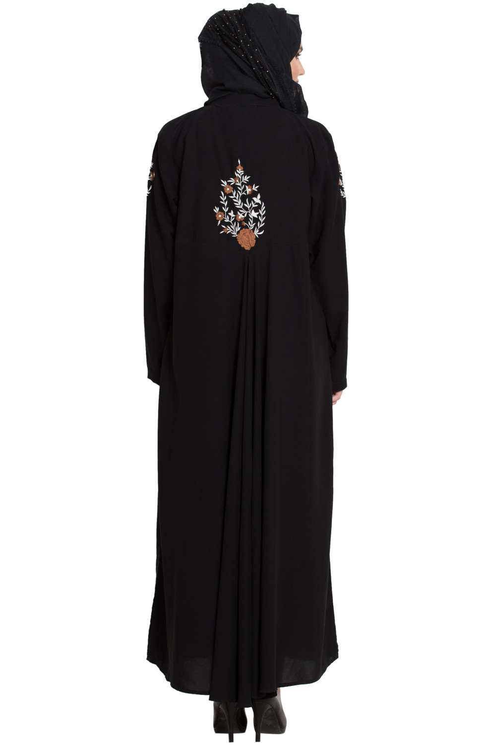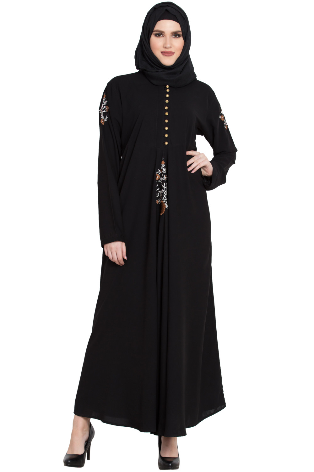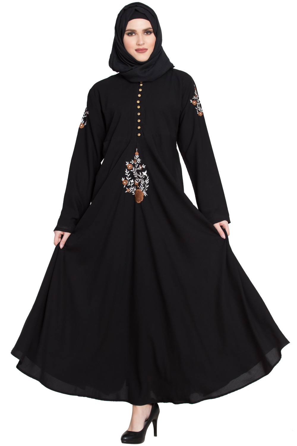 – Silhouette: Umbrella-style Flared Abaya with a gown-like sweep