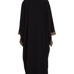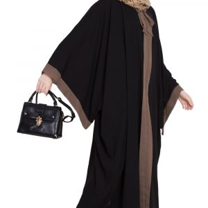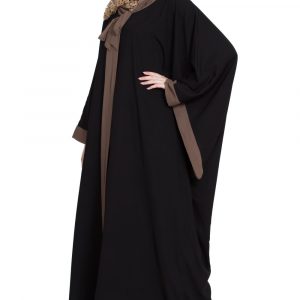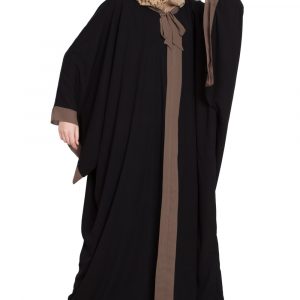 This Tie Style Kaftaan Abaya showcases a loose, kaftaan-inspired cut that allows for effortless airflow and ease of movement. The standout feature is the tie styling at the neck, finished in a tasteful contrast color that adds subtle dimension and a modern twist. Paired with the elegant Black Aghani pattern, the design exudes sophistication without being overly ornate. The result is a versatile abaya that balances tradition and contemporary flair—perfect for those who want a modest piece with a refined personality.