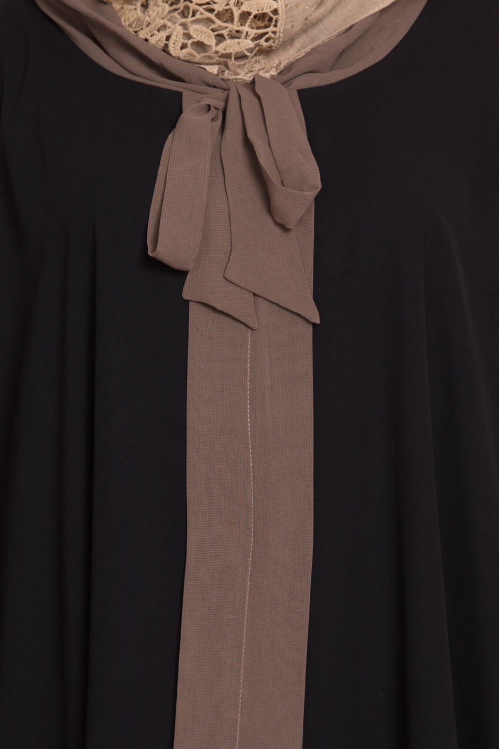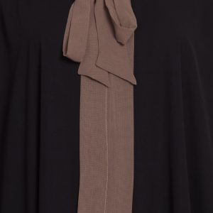 The loose kaftaan pattern is designed to flatter. Its drape skims gracefully without clinging, creating a clean line from shoulder to hem. The tie-style neckline allows you to adjust your look—wear it in a neat bow for a polished touch or in a relaxed knot for a more casual mood. This adaptable neckline makes the Tie Style Kaftaan Abaya suitable for a range of settings, from everyday wear to low-key occasions.