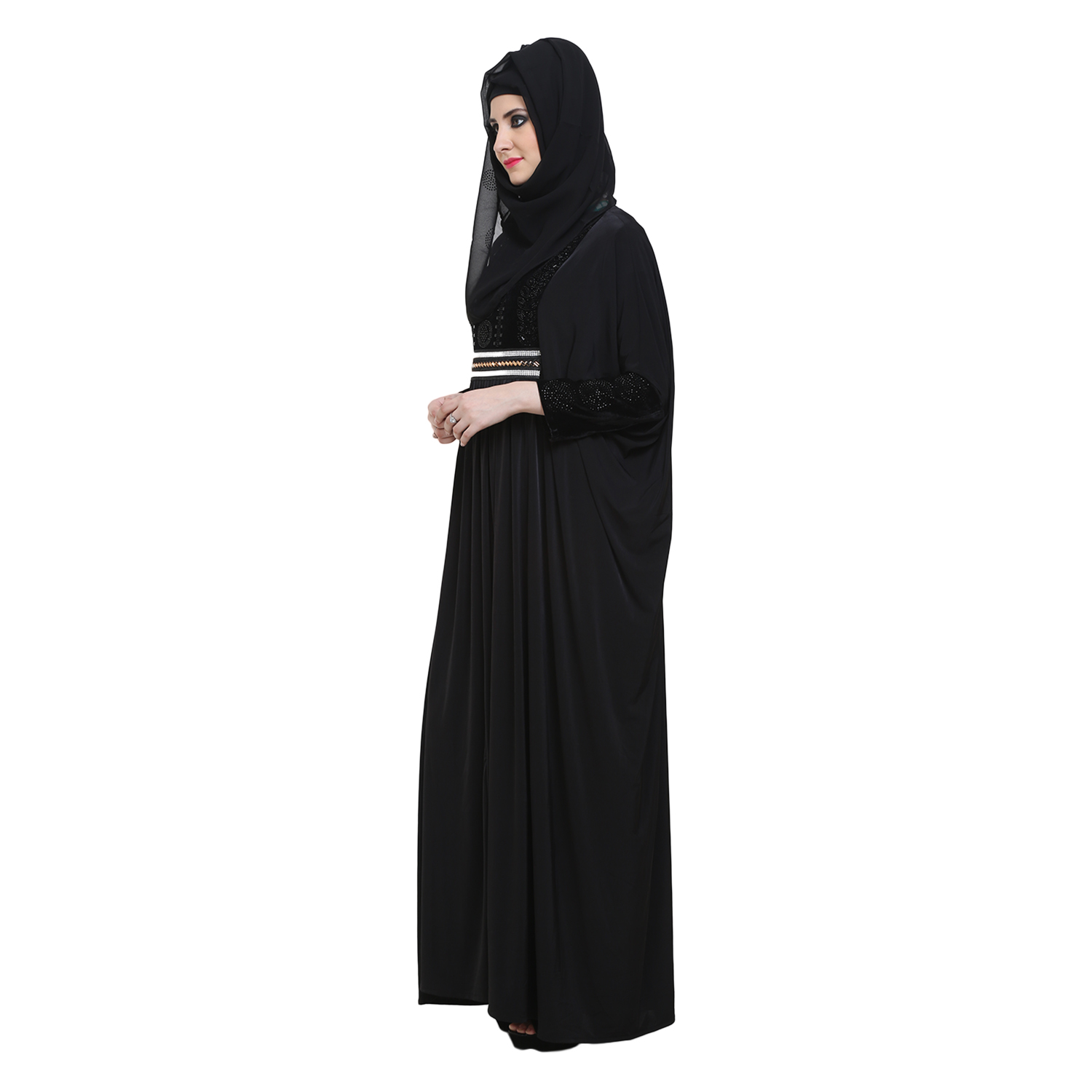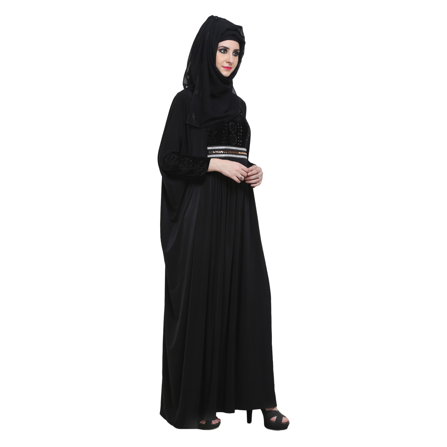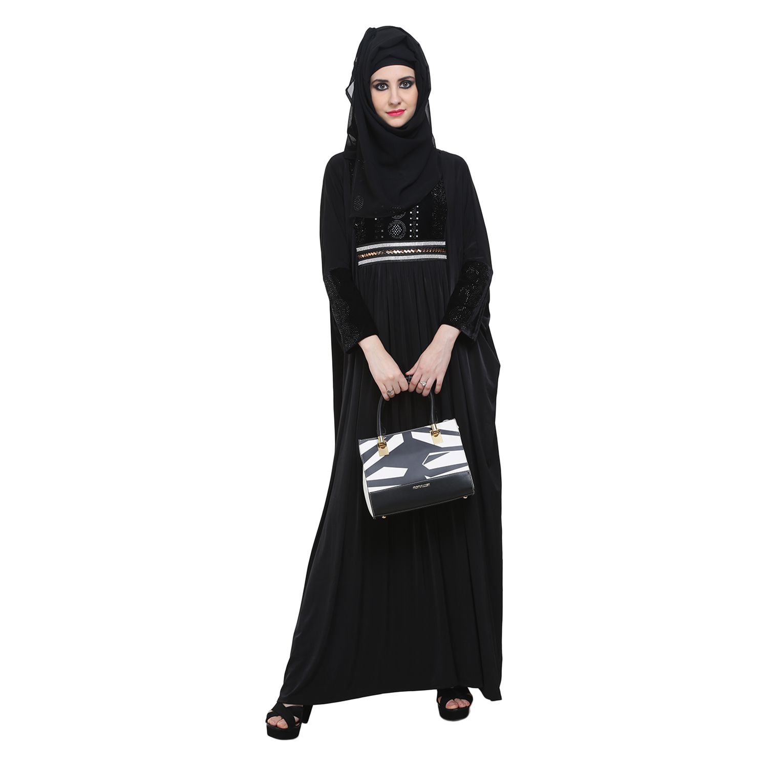 * This Black lycra Abaya has stitched as designer kaftaan style Abaya