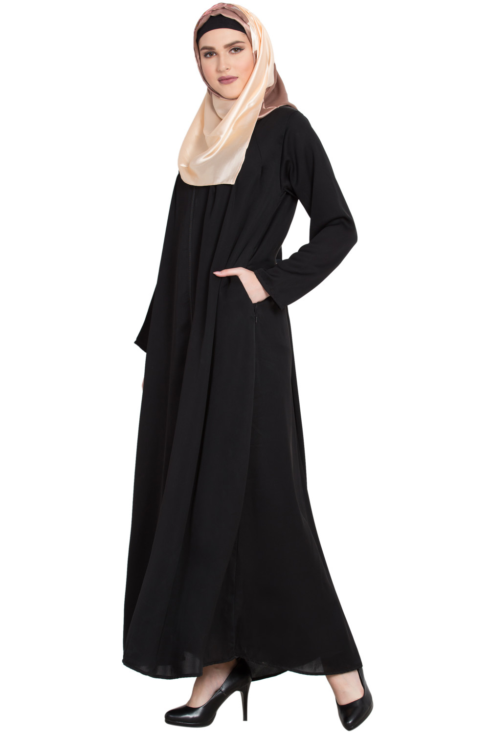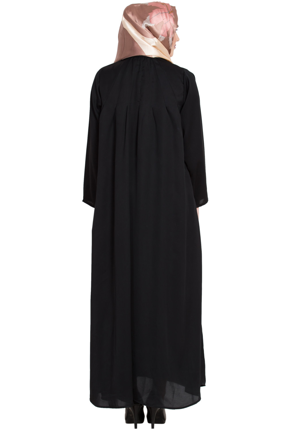 The Zipper Open Abaya is a versatile choice for those who value convenience and style. The full front zipper makes it easy to put on and take off, perfect for busy days or layering over your outfit. It also adds a clean, contemporary edge to traditional abaya styling. For nursing mothers, frequent travelers, or professionals on the go, the zipper closure offers unmatched practicality while maintaining a refined aesthetic.