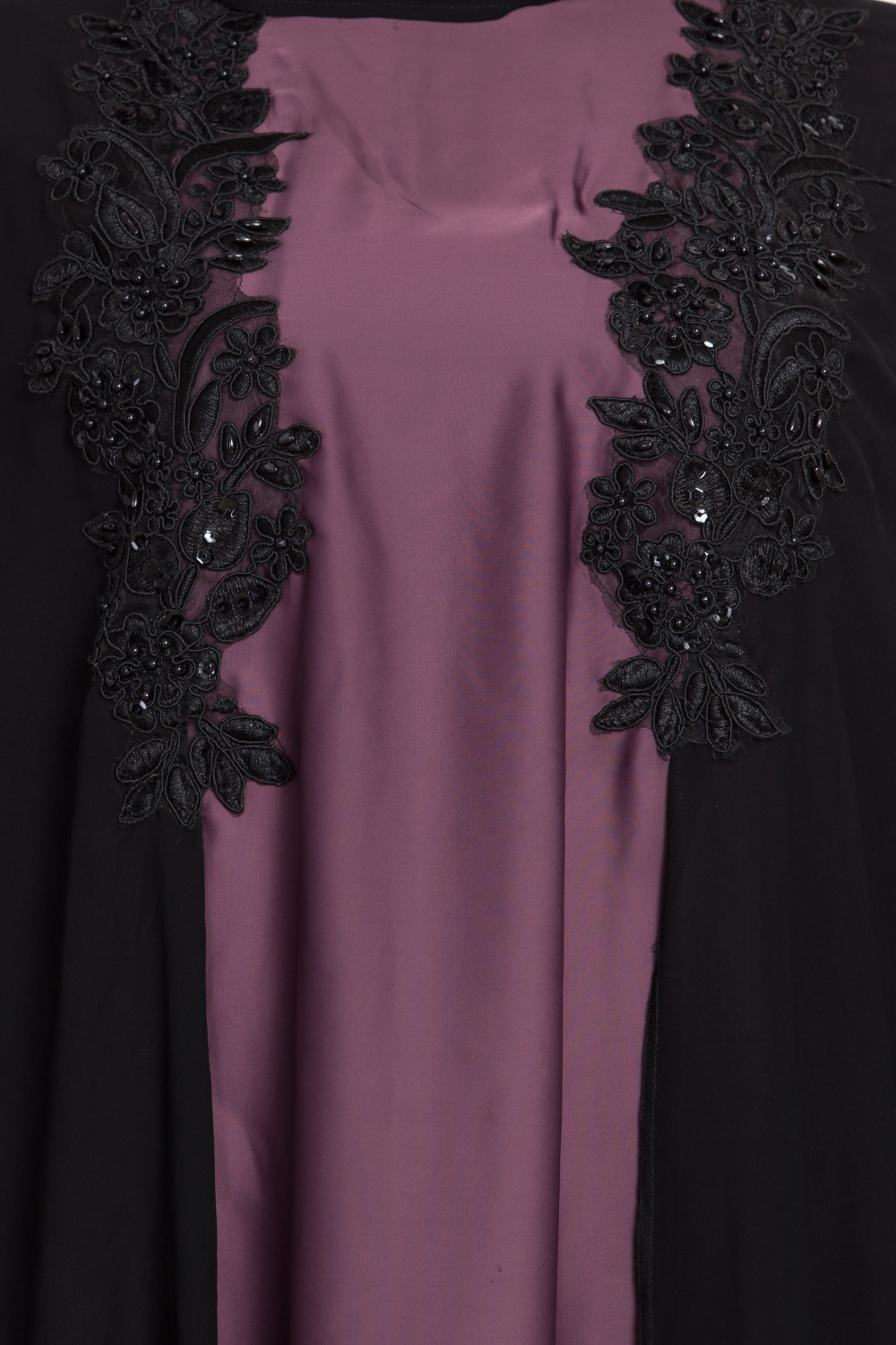 This is more than an abaya—it’s a kaftaan-inspired silhouette made to make an impression. The double-layer design enhances both style and functionality, draping elegantly while maintaining modest coverage. The black-and-gold patchwork—positioned on the front and along the sleeves—adds a luminous contrast that catches the light without overwhelming the ensemble. It’s the kind of detail that reads as sophisticated and versatile, ideal for dressing up with statement accessories or keeping minimal for a polished, understated look.