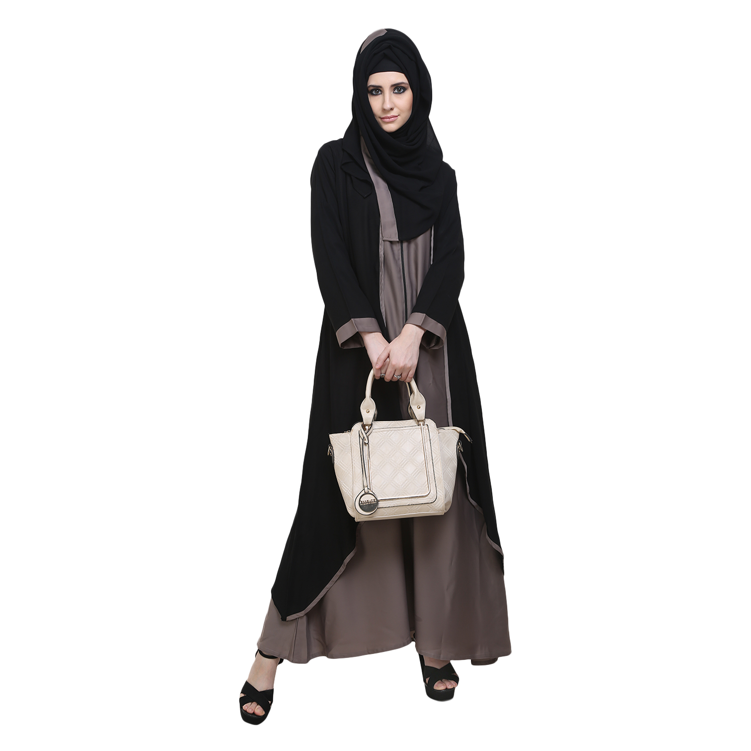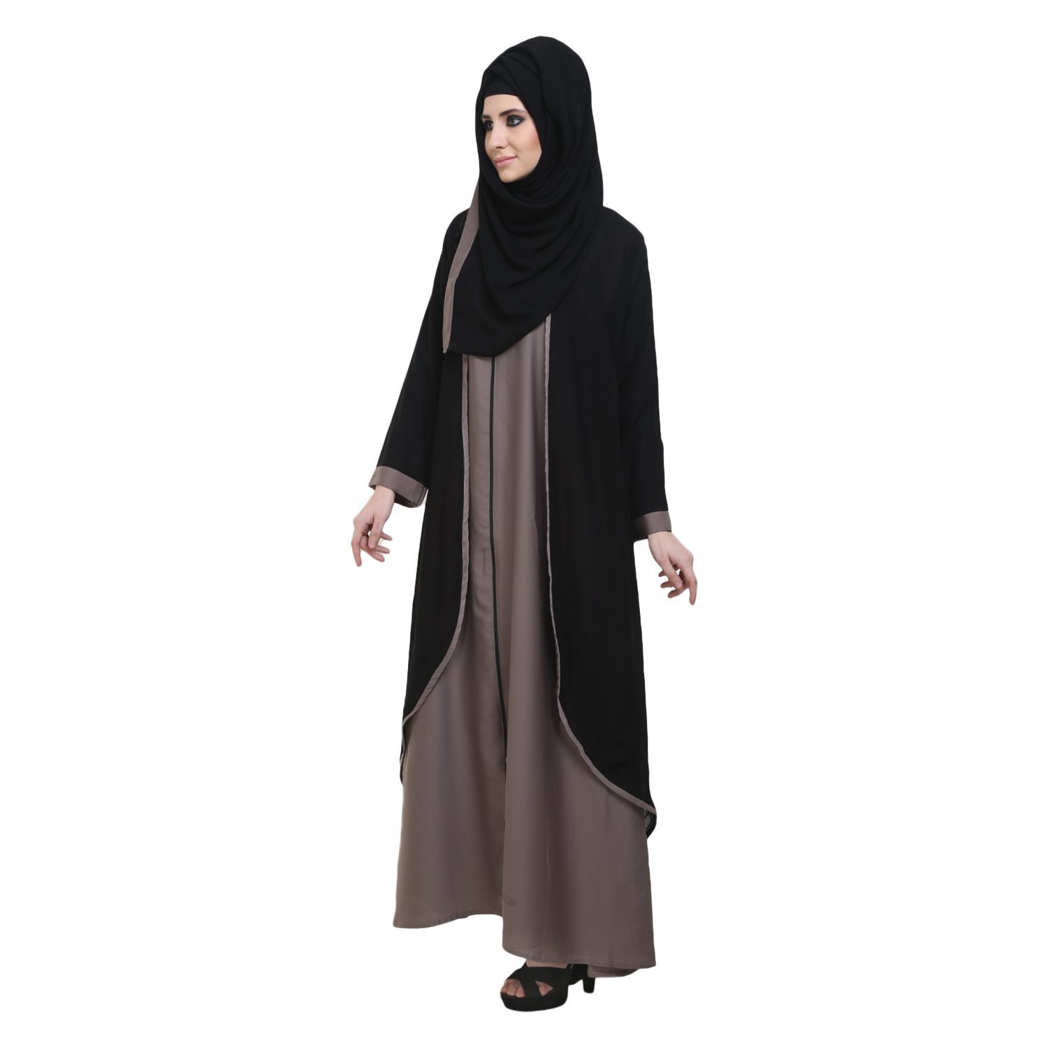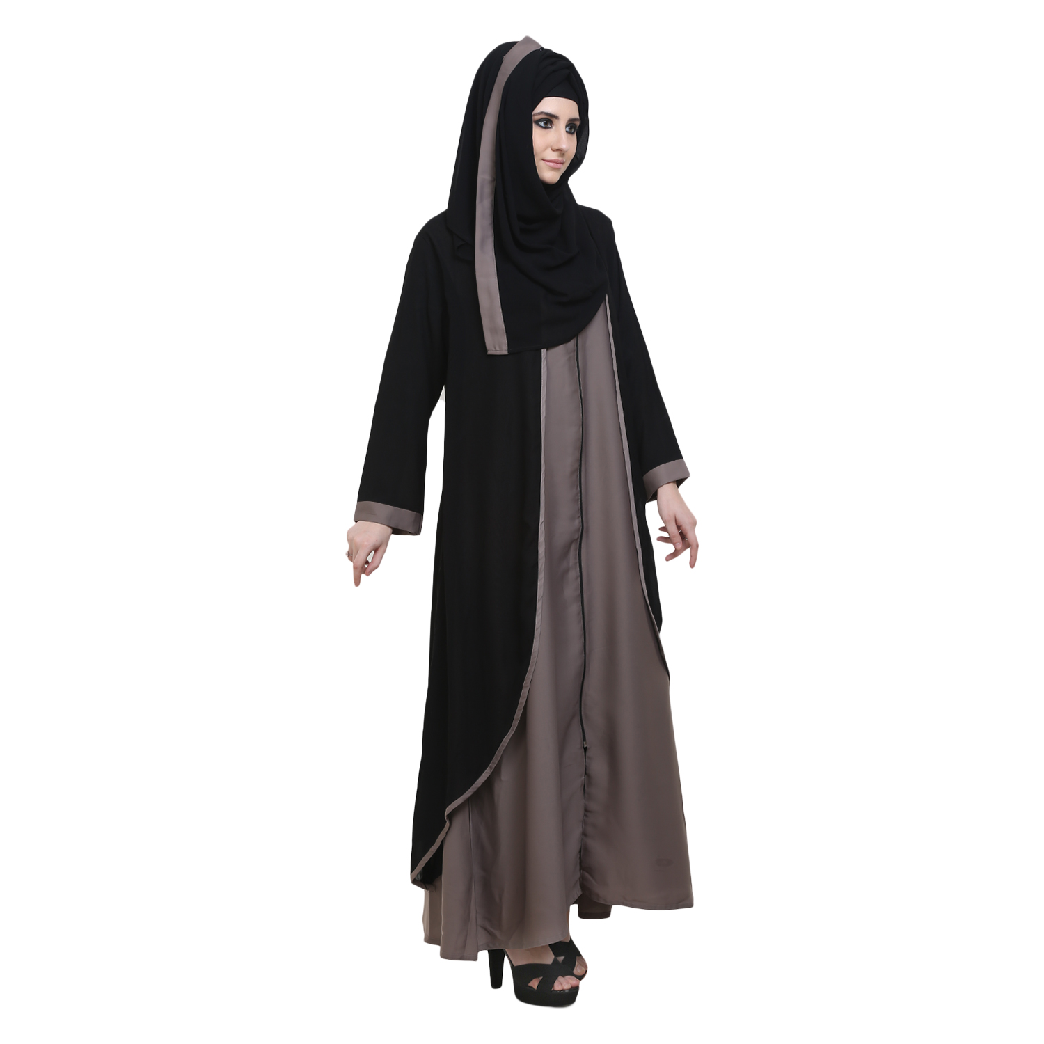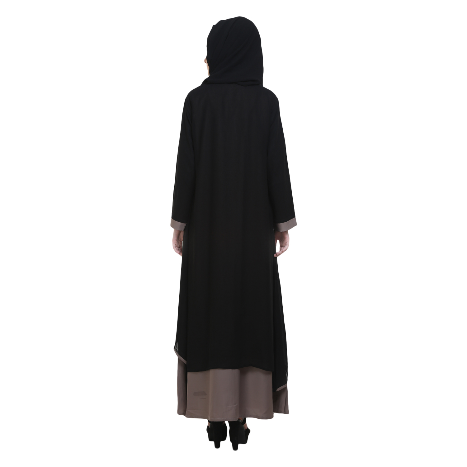 * This Black & Silver Zipper Front open Style Abaya has a black