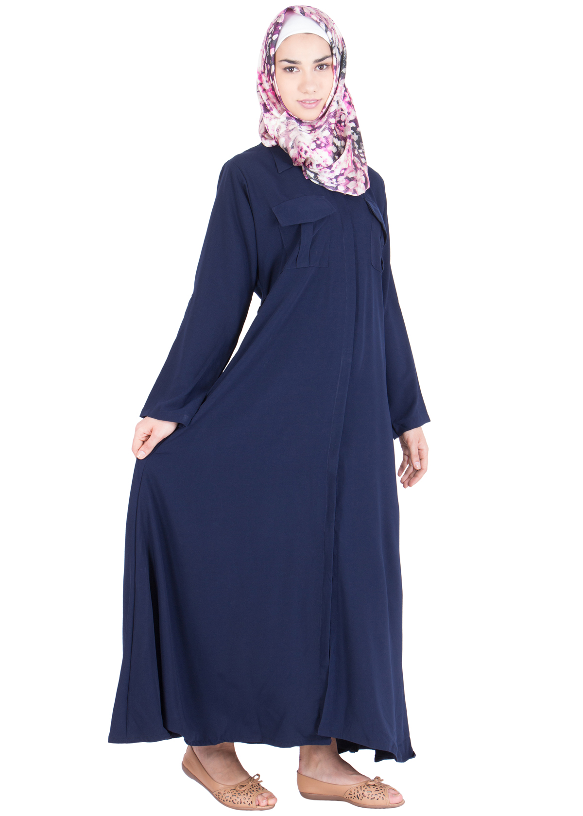 Blue Shirt Dress Abaya - Stylish & Modest Front Open Abaya