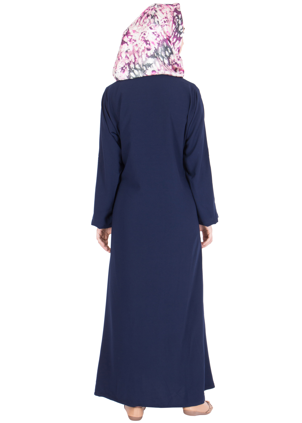 The Blue Shirt Dress Abaya is the perfect blend of contemporary style and modest fashion. Crafted from premium PolyCrepe fabric, this abaya offers unmatched comfort, lightweight feel, and durability. Its front-open design and shirt-style pockets on both sides make it a modern choice for everyday wear or special occasions.