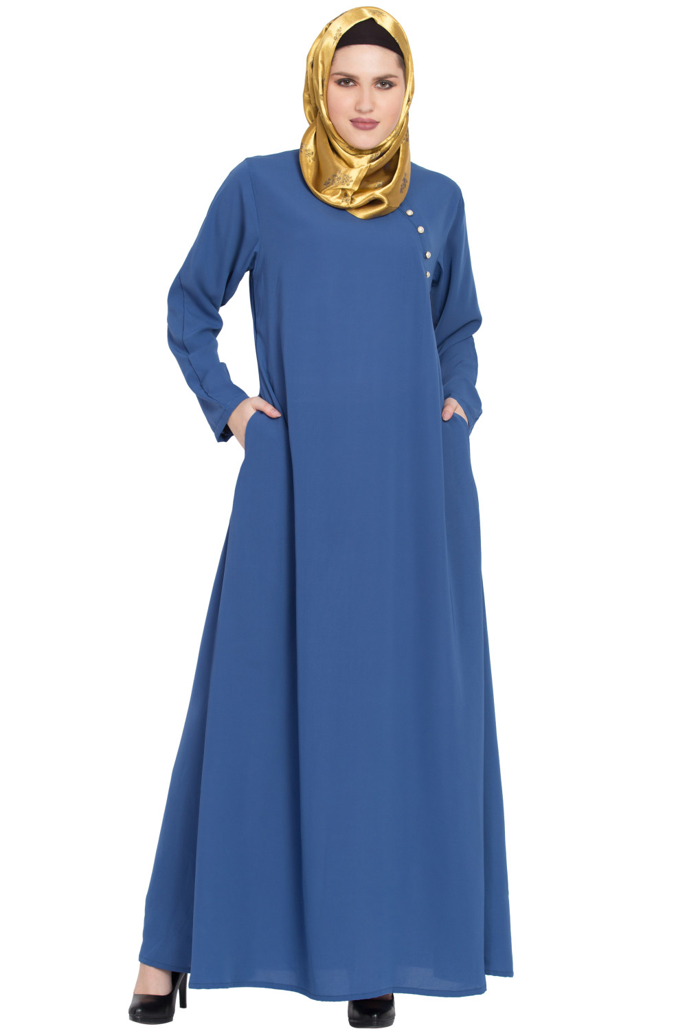 Discover the quiet power of a blue abaya—effortless, elegant, and endlessly versatile. More than a modest staple, the blue abaya is a refined canvas for everyday ease and special-occasion polish. Crafted in luxuriously soft crepe with a fluid drape, it moves with you, breathes beautifully, and flatters without fuss. From daytime errands to evening gatherings, its sophisticated simplicity makes it the piece you’ll reach for again and again.