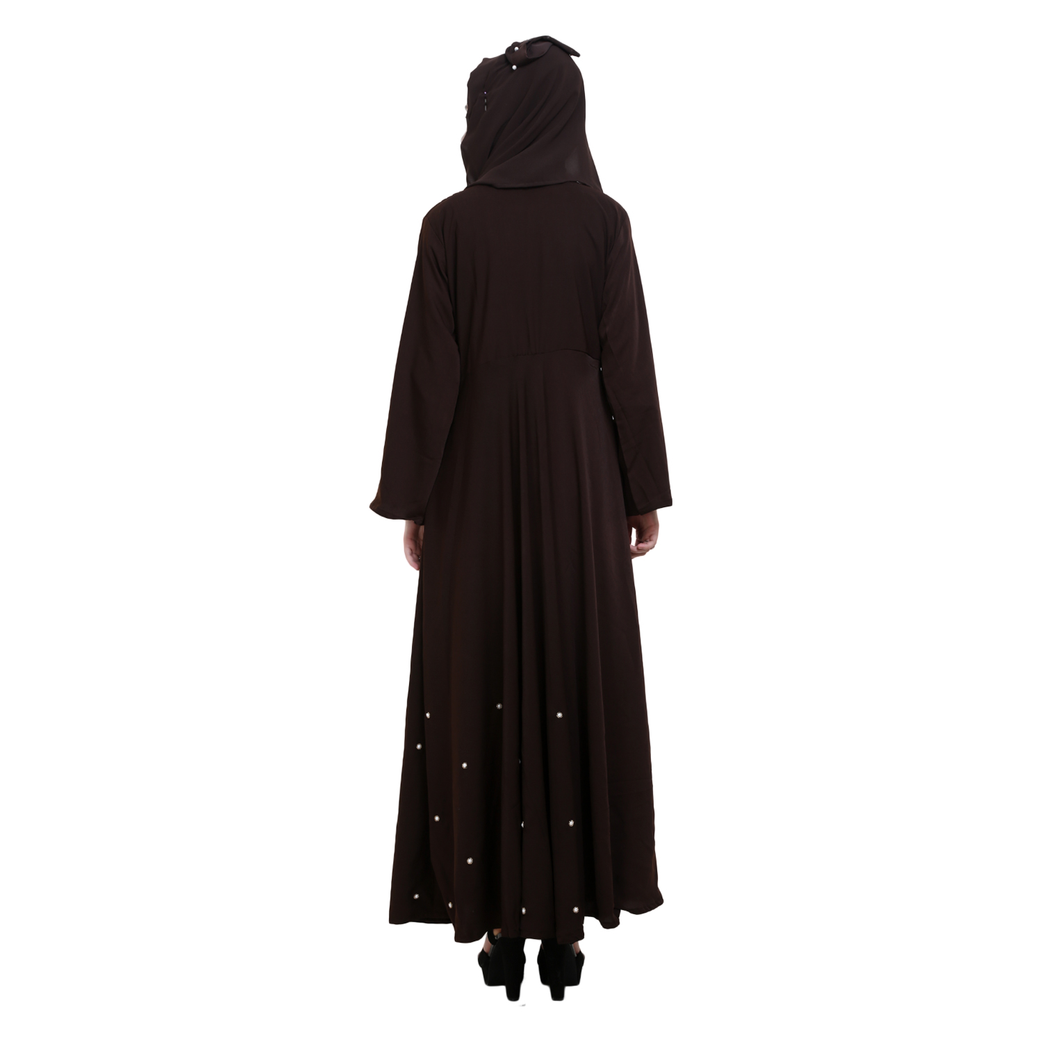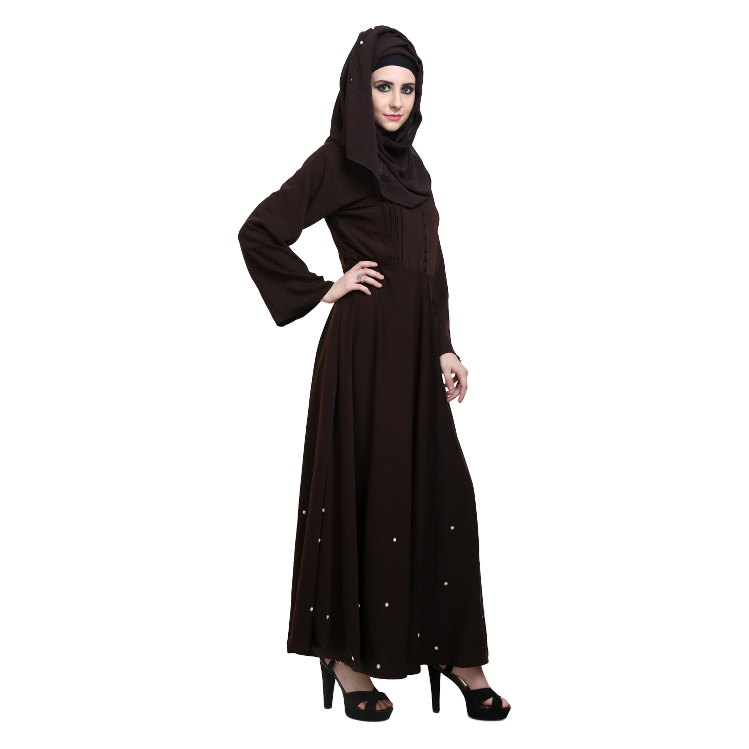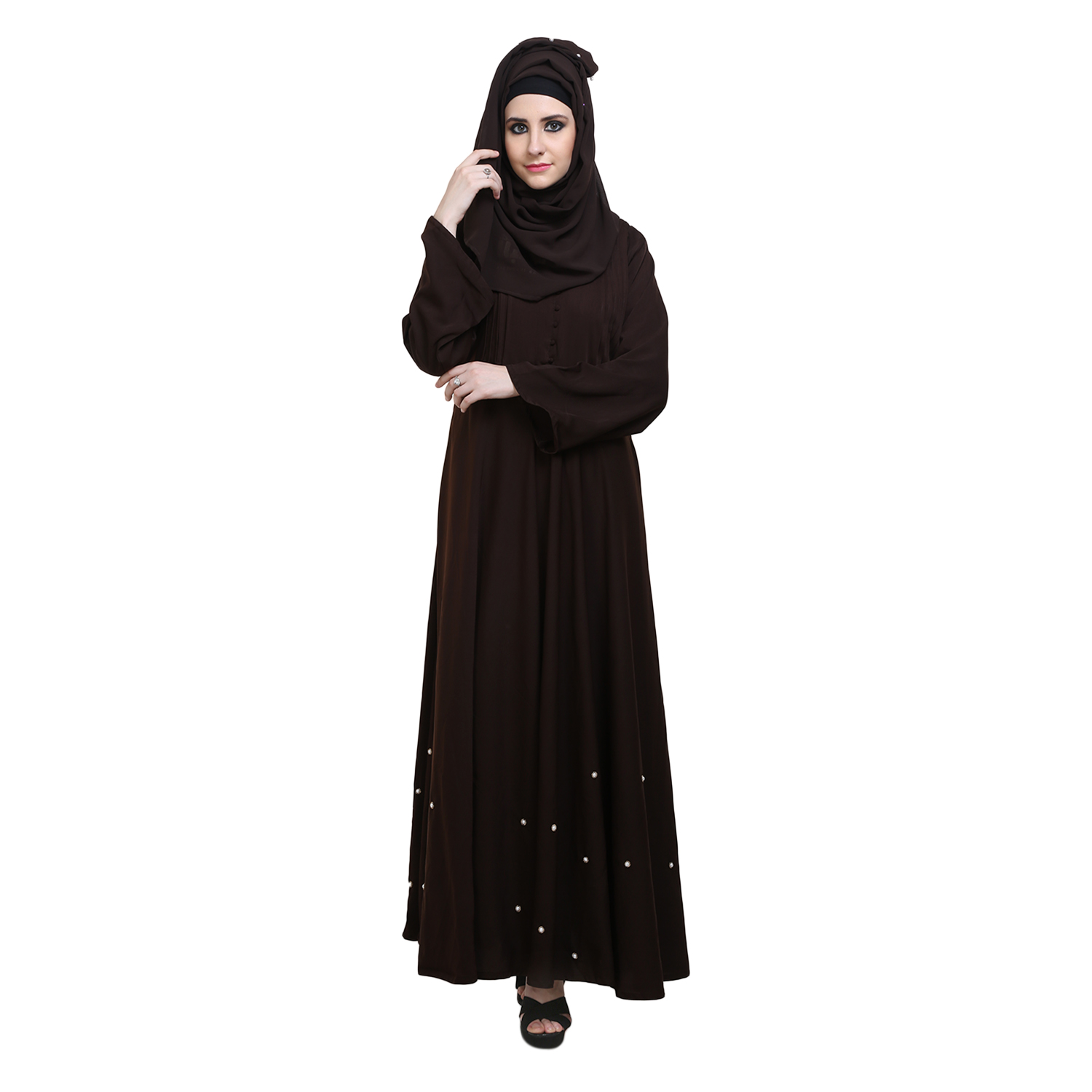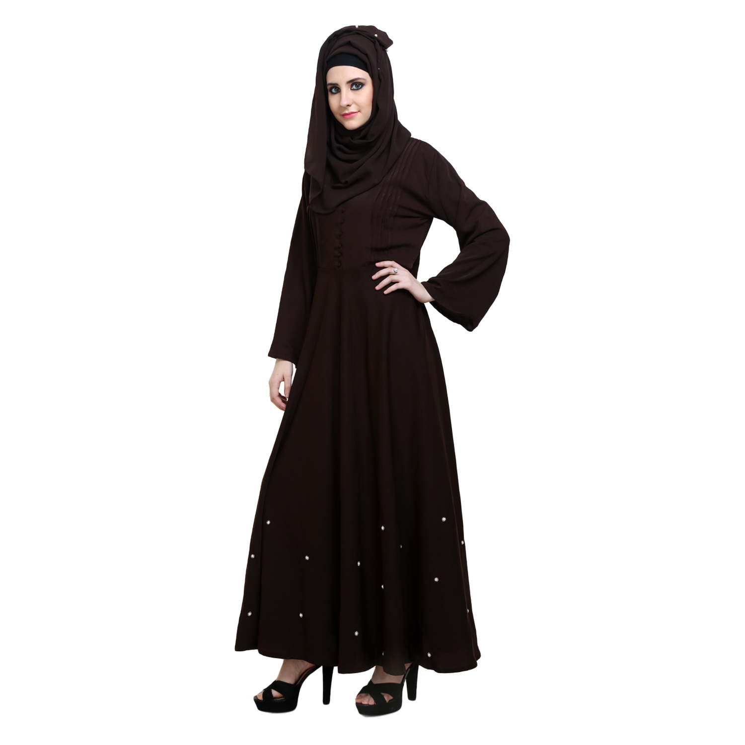 * This Coffee polycrepe Abaya has pintuck on top and having