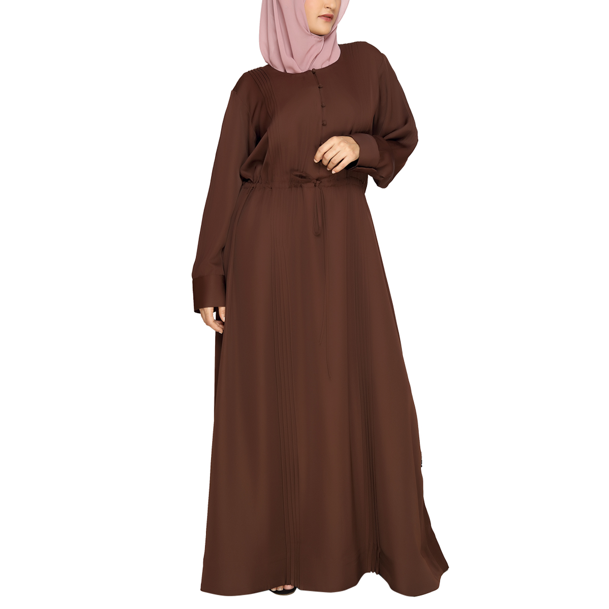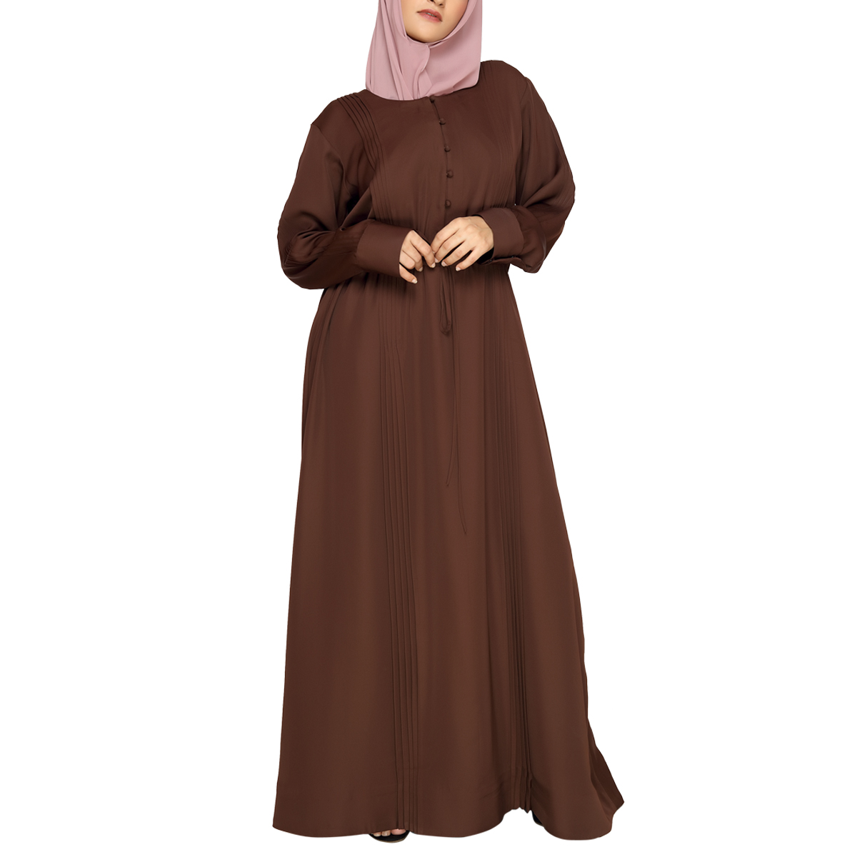 If sober and stylish is a combination that impresses you, then look no further! This Dark Brown Jilbab with centrally aligned buttons and a waist wrap is made up of soft and luxurious PREMIUM NIDA FABRIC.