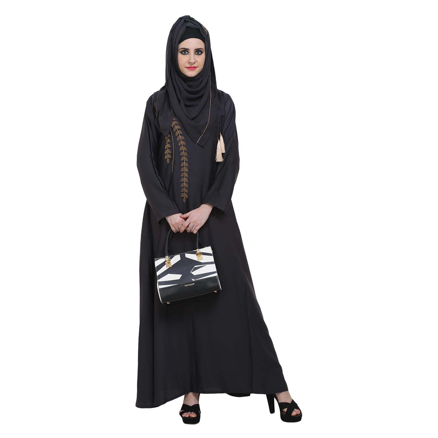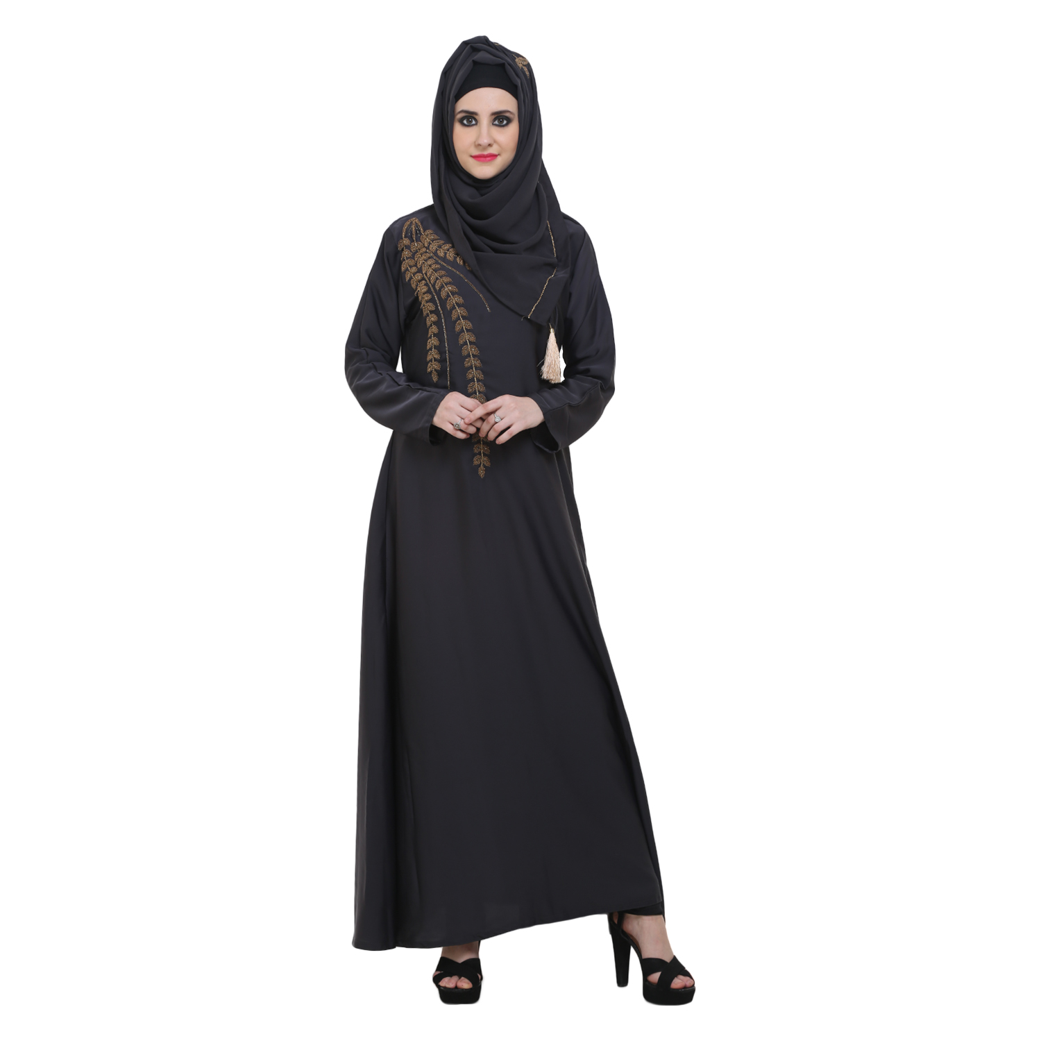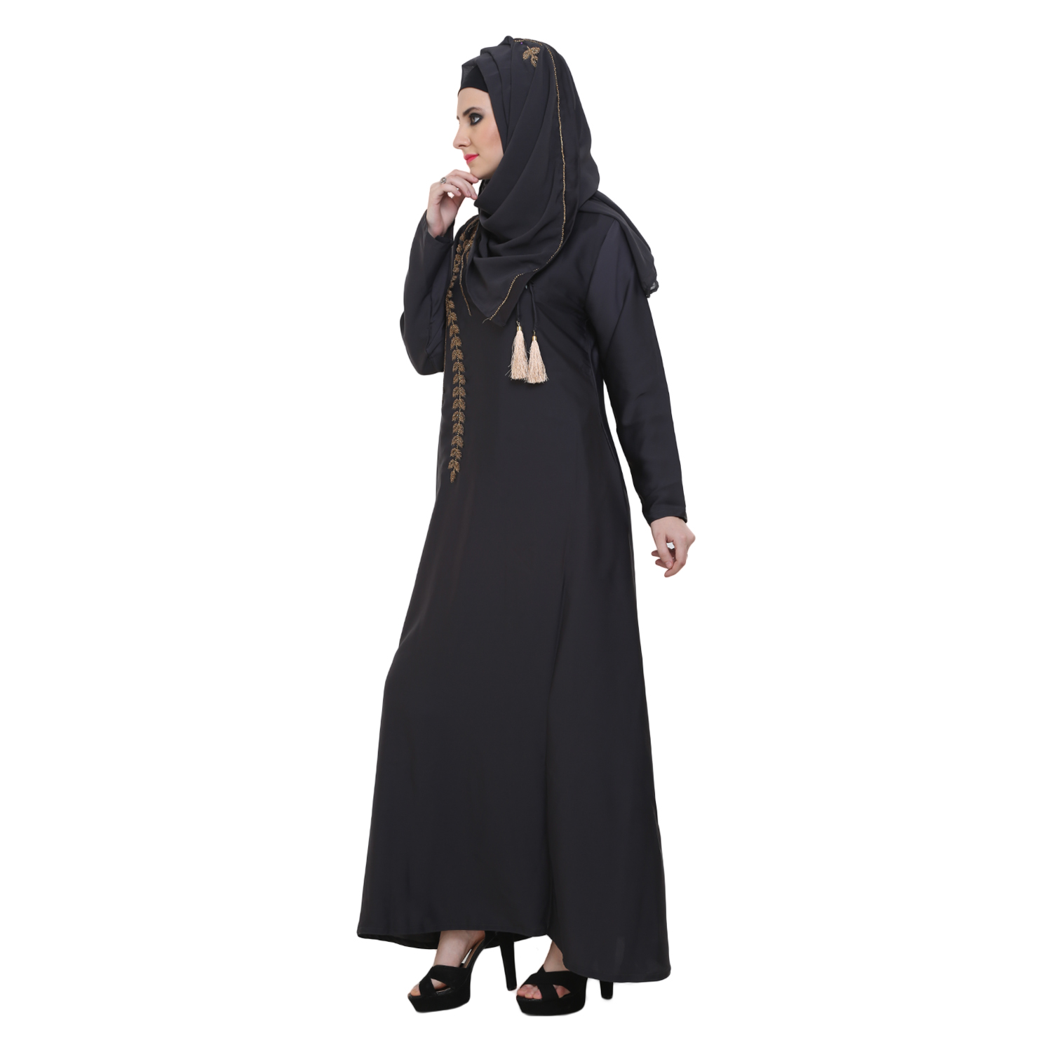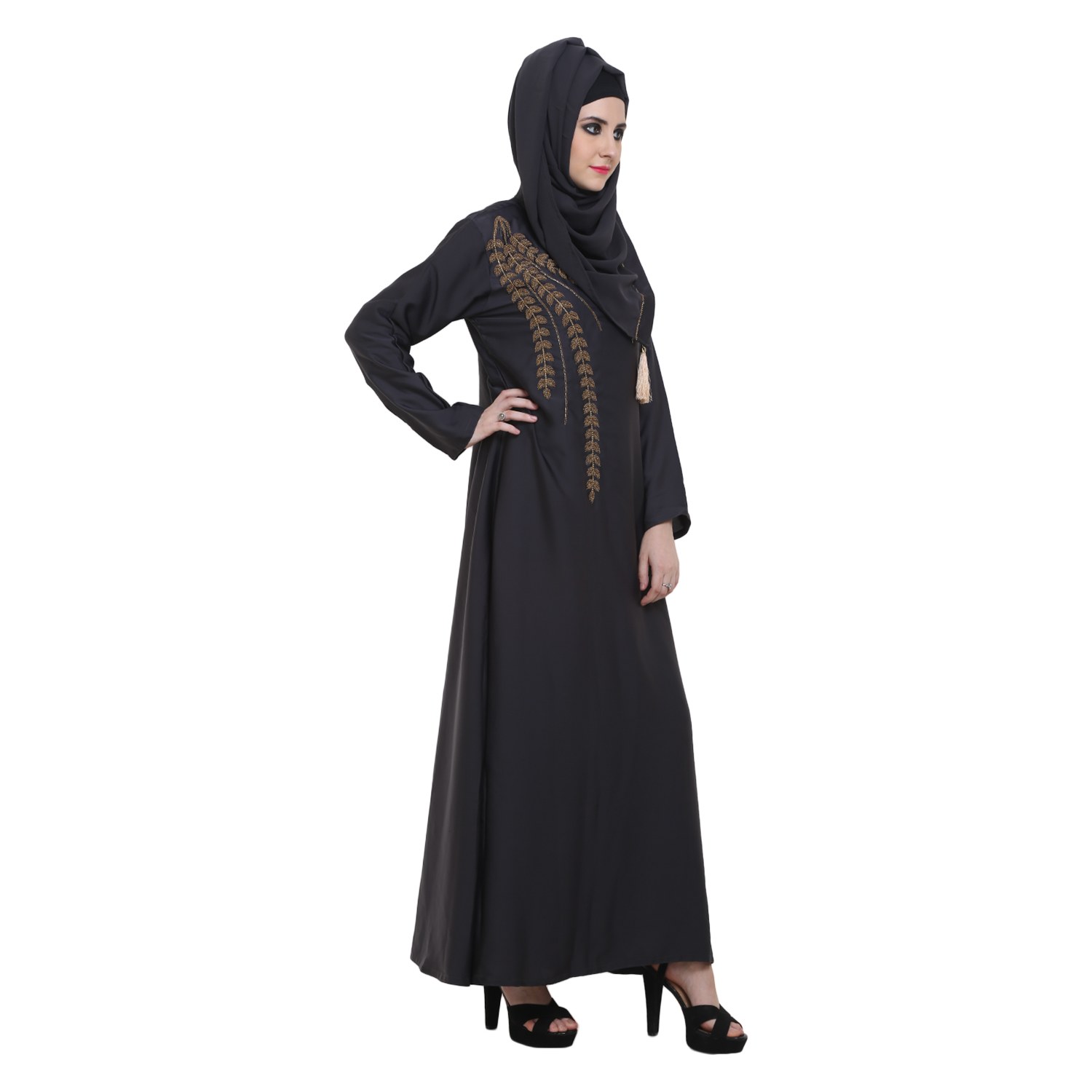 Dark Grey Zari Work Abaya – Stunning Bridal Best Choice