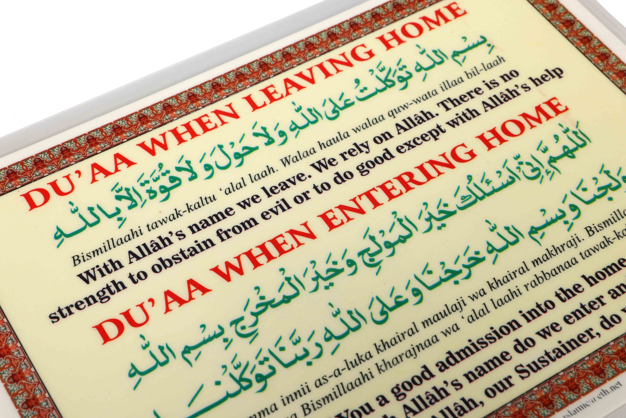 - Includes Duas for entering and leaving home