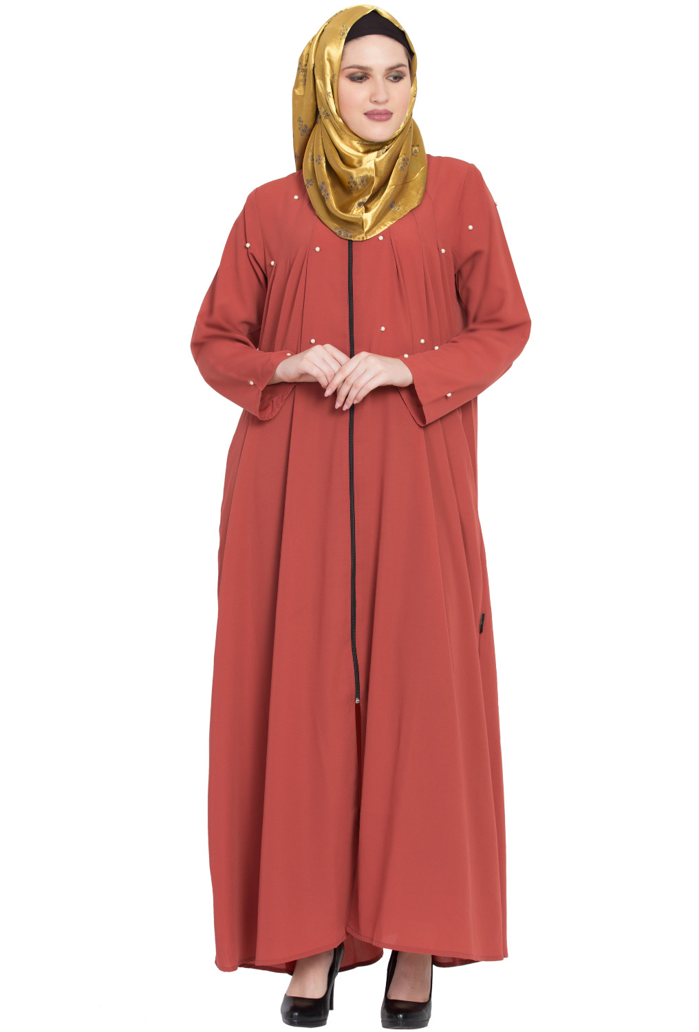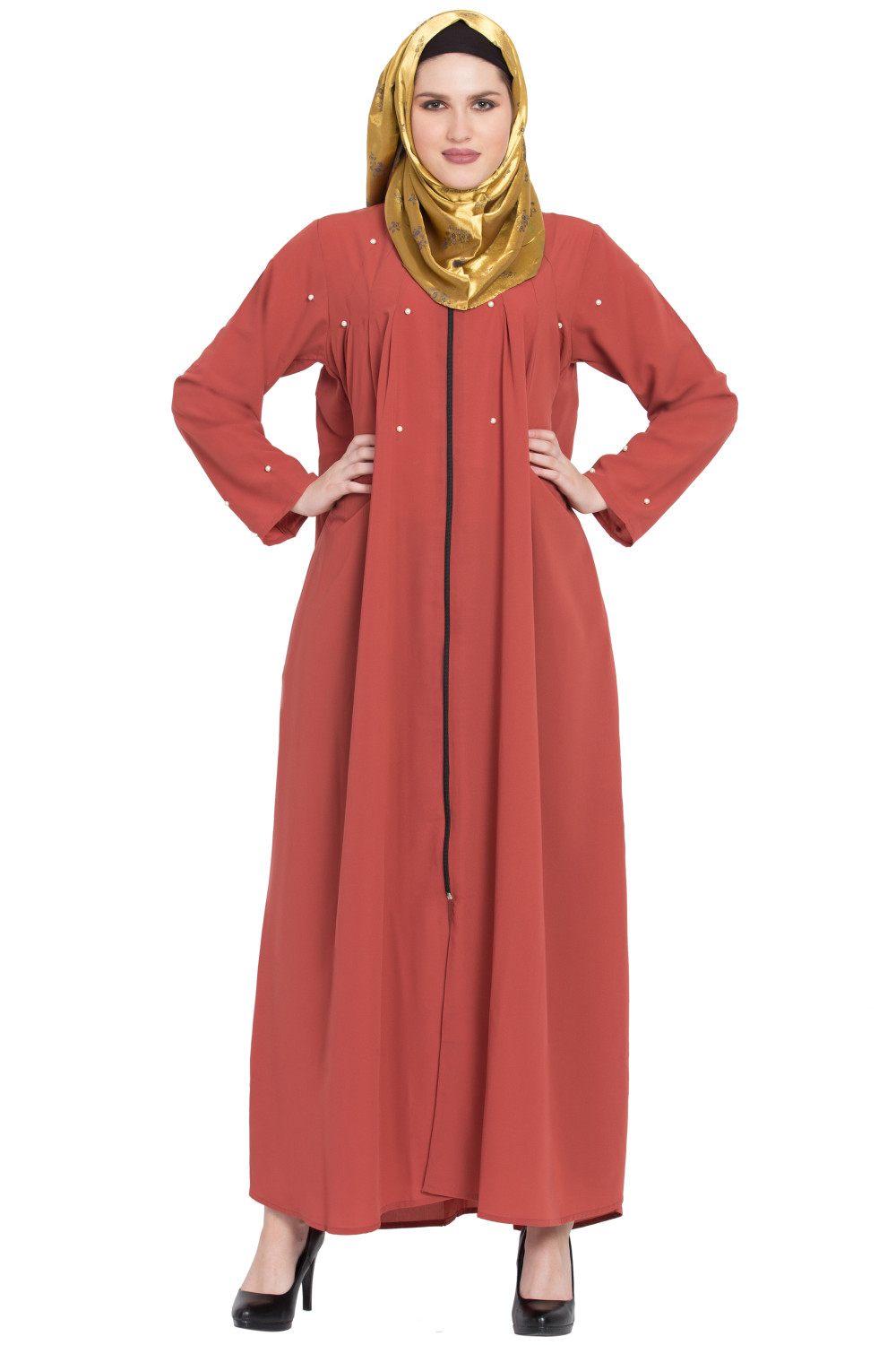 Beyond convenience, the zipper design lends a modern edge to a classic garment. It’s a subtle detail that reads contemporary without overpowering the overall silhouette. Whether you prefer full closure or a slightly open front layered over a dress or trousers, the zipper abaya adapts to your styling needs with minimal effort.