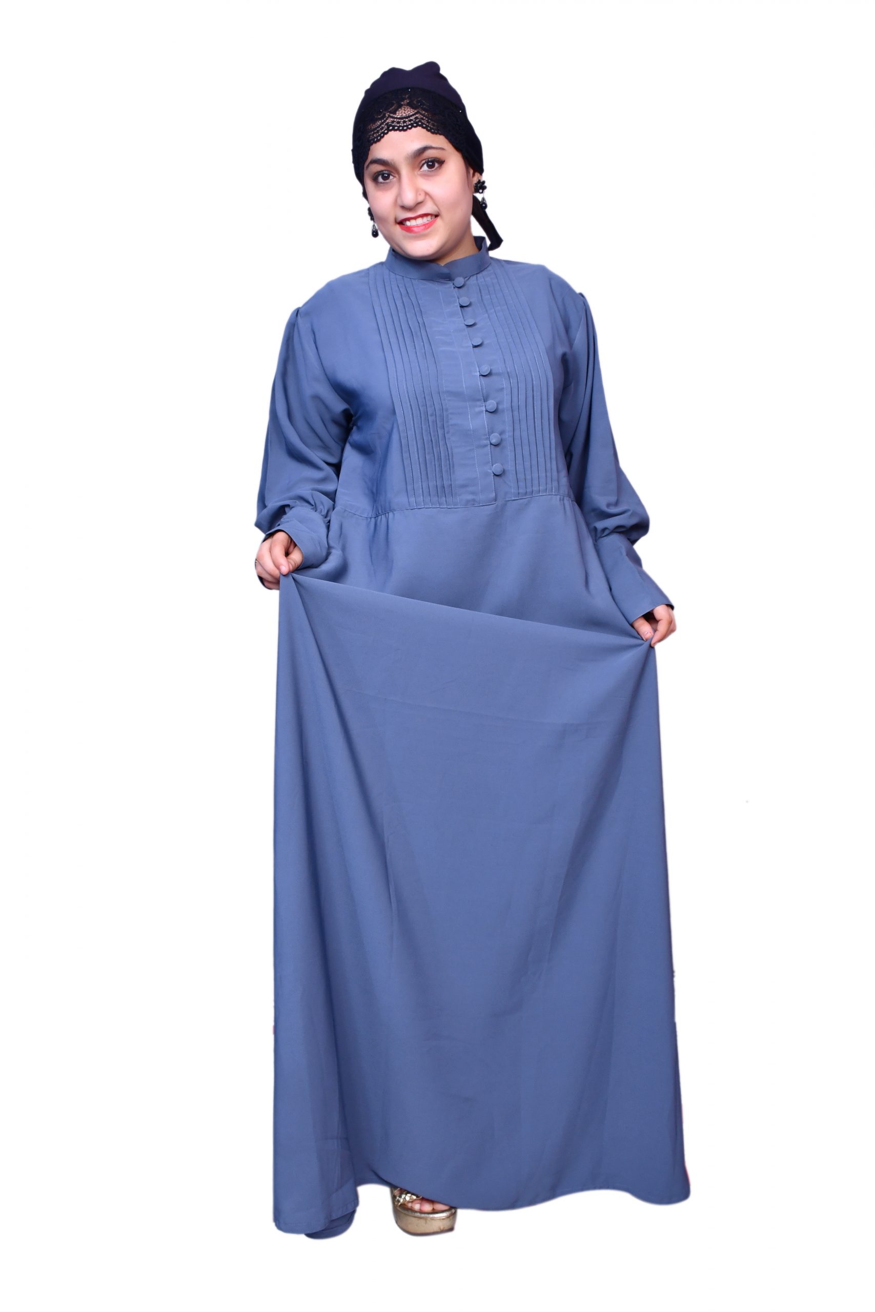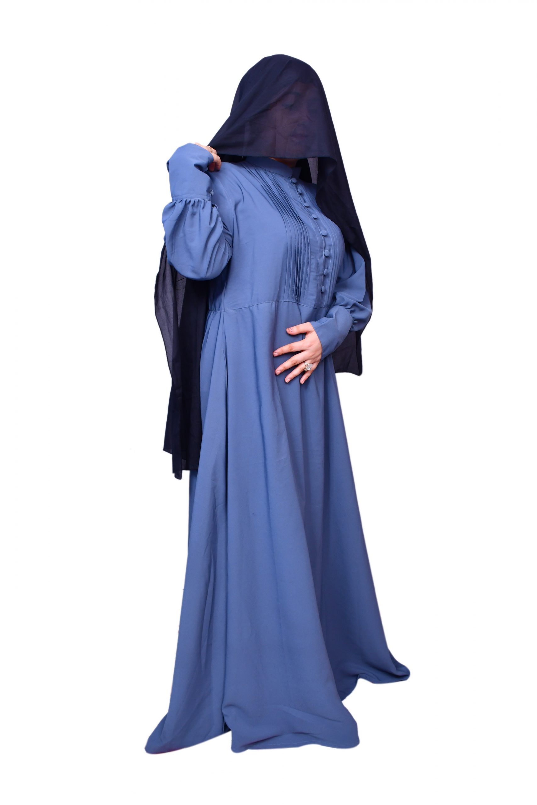 Description: A well-sophisticated abaya with front open yoke by the zip which is easy to wear.yoke attached by umbrella gathering.