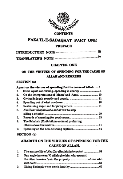 With the highest praise to Allah Subhanahu wa Ta’ala and with Darood and Salaam to Rasulullah Sallallaho alaihe wasallam, these few pages are being presented to our readers to bring out the virtues of Sadaqaat (spending for the cause of Allah). As mentioned in the preface to my booklet on Fazail-e-Hajj, my late uncle Maulana Muhammad Ilyas Rahmatullah alaihe was deeply interested in the publication of a book on this subject and, in the last days of his life, he repeatedly urged me to write one. So much so that, once while standing for Asr Salaat when ‘Takbeer’ was being called, he leaned forward from the row and said to this humble Author Name(s), Do not forget that book. In those days of’ his illness, Maulana did not lead Salaat, he joined the Jama’at.