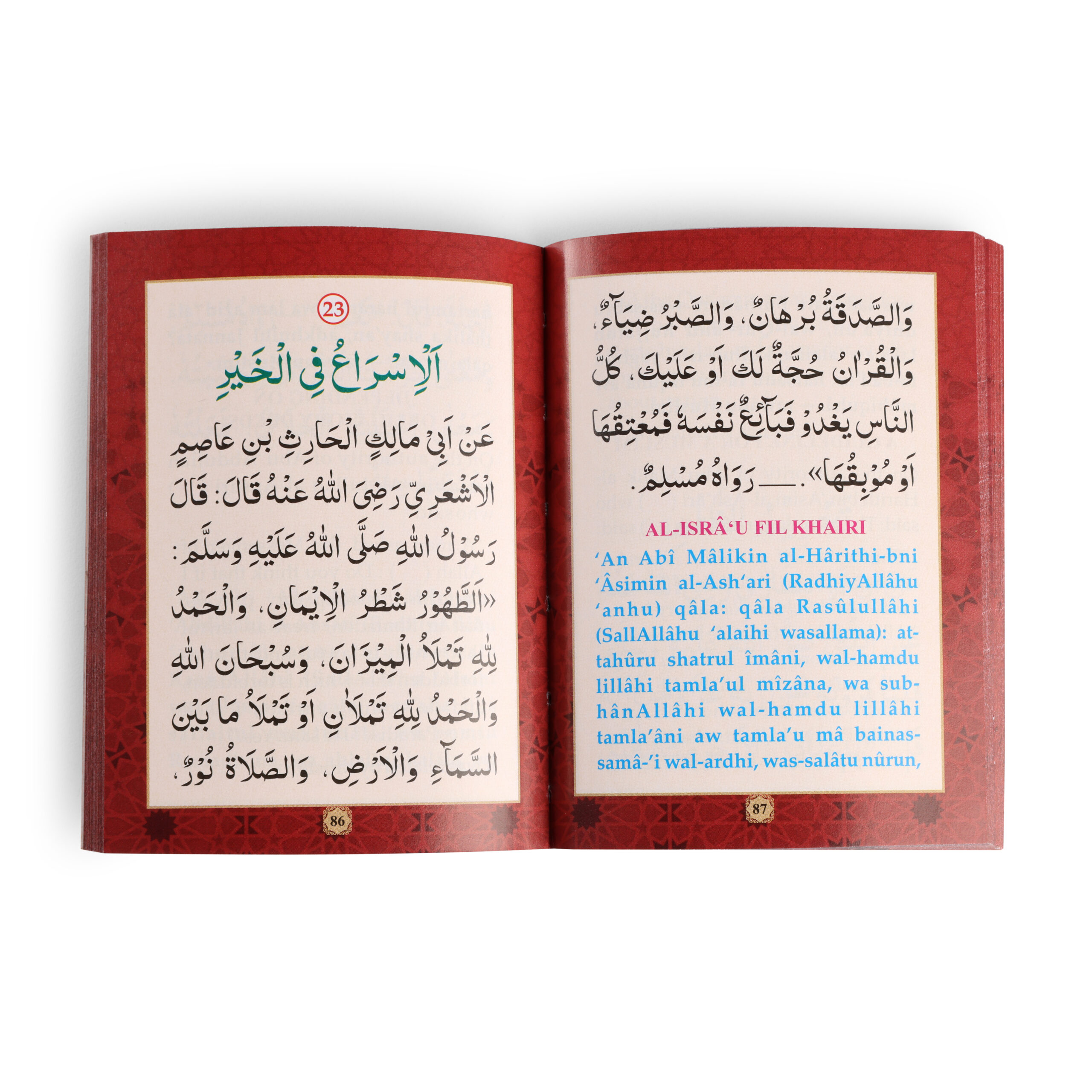 This Hadith is in Arabic with English translation first time attempted by Imam Al Nawawi in the 13th Centaury AD. It incorporates a comprehensive selection of well authenticated Hadith on the most important aspect of religious knowledge