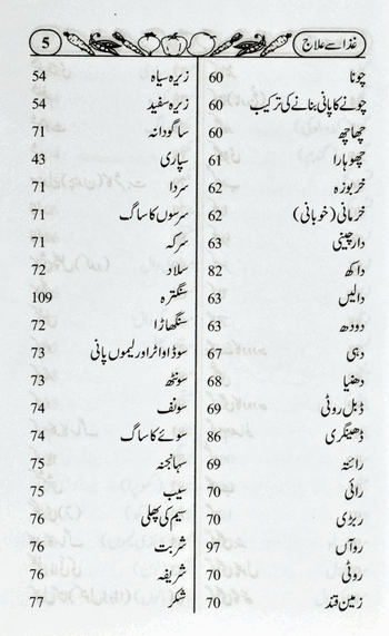 Ghiza se Ilaj’ by Abdul Lateef Farooqui, is a hand book providing information regarding treatment of common ailments through daily use household natural foods and products, and their importance, uses and a list of remedies that can be made from them in order to live a healthy lifestyle.