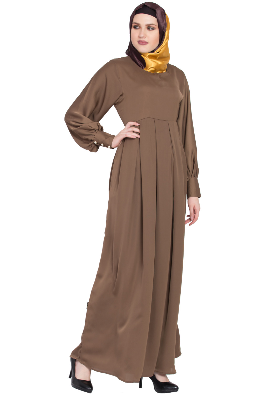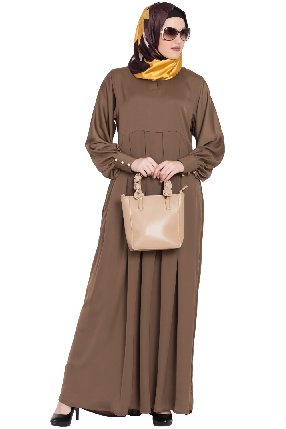 – Bridal elegance: Pair with a silk inner dress, a delicate hijab in satin or chiffon, and minimal jewelry to let the pearl detailing shine. Add sleek heels and a clutch for a complete bridal look.