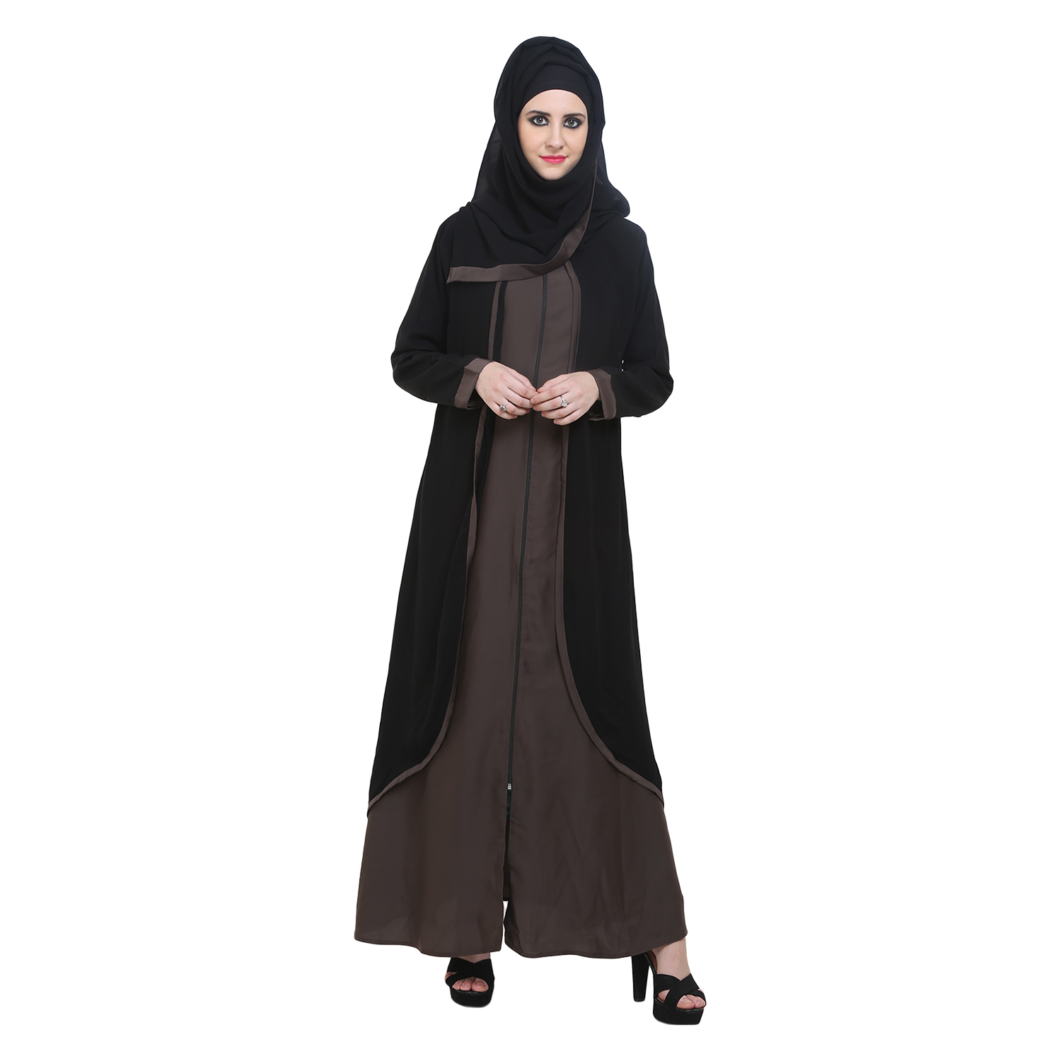 – Seasonal flexibility: Layer with a lightweight cardigan in warmer months or a long-line coat in cooler weather without compromising the clean lines of the abaya.