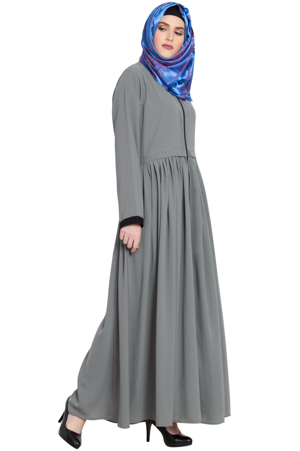 Functionality is thoughtfully built into this Pleated Zipper Abaya:
