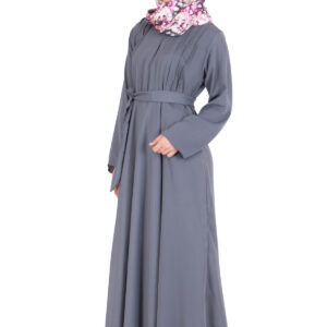 Perfect for women who embrace modest wear, this abaya includes thoughtful details such as a round neckline, three pleats on both sides of the chest, and a same-fabric belt to accentuate your look with a modest touch. The floor-length design and soft, breathable fabric make it an ideal choice for daily wear, formal events, or religious gatherings.