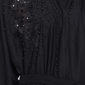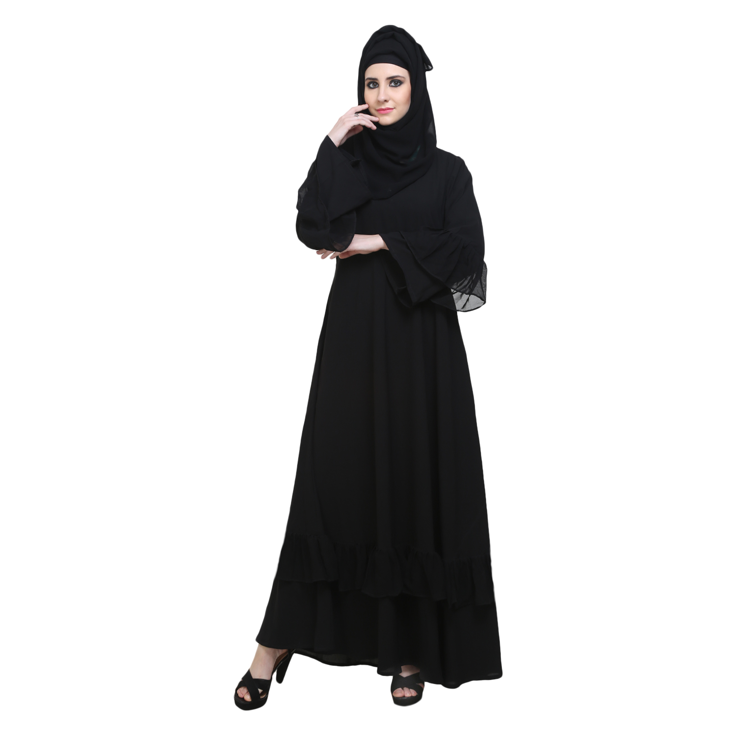 What sets this Kaftaan Style Abaya apart is its thoughtfully crafted double-layer design. The layers add depth and movement, creating a subtle cascade effect as you walk. White pearl accents and delicate lacework elevate the piece into true party wear, catching the light with a gentle shimmer rather than overpowering your look. The result is a refined, feminine aesthetic that reads elegant and polished.