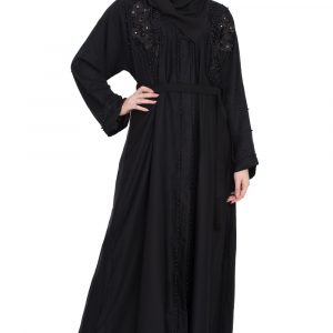 The Kaftaan Style Abaya is where modest fashion meets luxurious design, making it a standout choice for parties, celebrations, and special gatherings. Crafted from premium Nida, an imported fabric prized for its rich feel and impeccable drape, this abaya delivers an elegant silhouette that moves beautifully with every step. With its unique double-layer construction and delicate white pearl and lace detailing, it instantly elevates your look—while keeping you comfortable, covered, and confident. If you’re seeking a party-ready statement piece with enduring appeal, this Kaftaan Style Abaya deserves a place in your wardrobe.