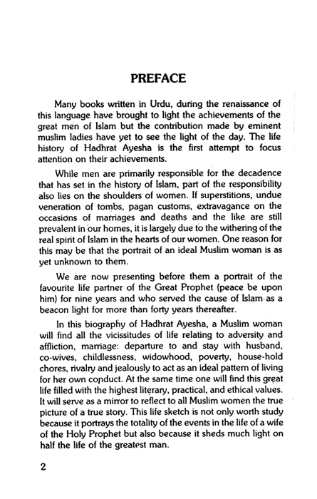 Besides being a well-researched narration of life-history of Hazrat Ayesha Siddiqa (Radhi Allahu Anha – May Allah be Pleased with Her) and personal virtues, the book brings out her substantial contribution to Islamic jurisprudence (Fiqah), in which she stands above all her co-wives and equals Sahabah of the first rank.