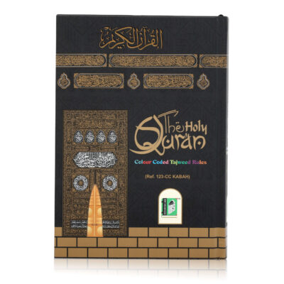 In This Qur’an Seven different color shades have been used and each color represents a Tajweed Rule. The color coding system has been introduced to highlight the Rules of Tajweed found in the Qura’nic text. Having a color block on the Tajweed Rules allows the reciter to emphasize the aCCent, phonetics, rhythm and temper of the Qur’anic recitation. The Holy Book of Quran. Reference Number – 123-CC. Available with Poplin Cover and Color Coded with English Tajweed Rules. Paperback. Readability – 15 lines. (Hafizi Quran)