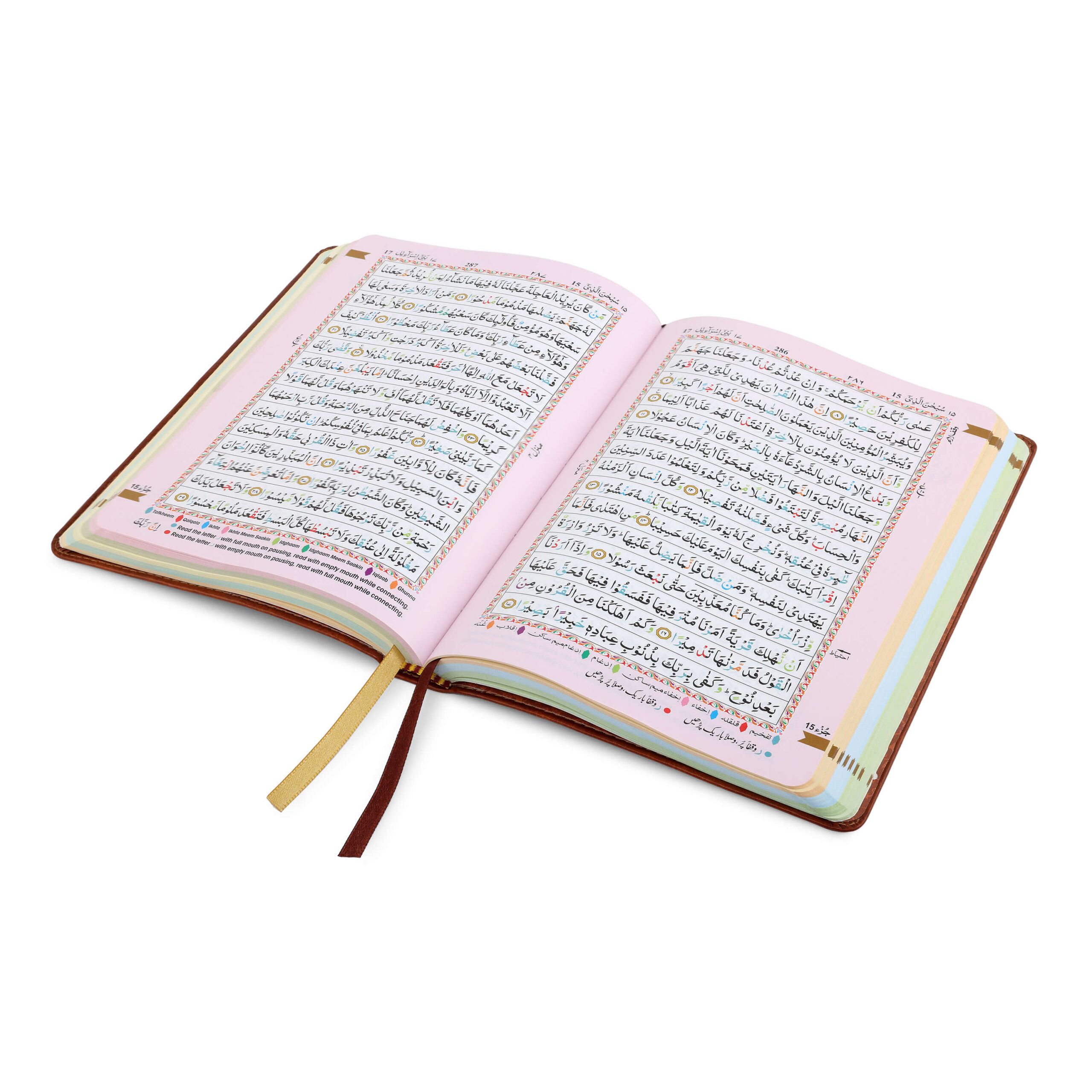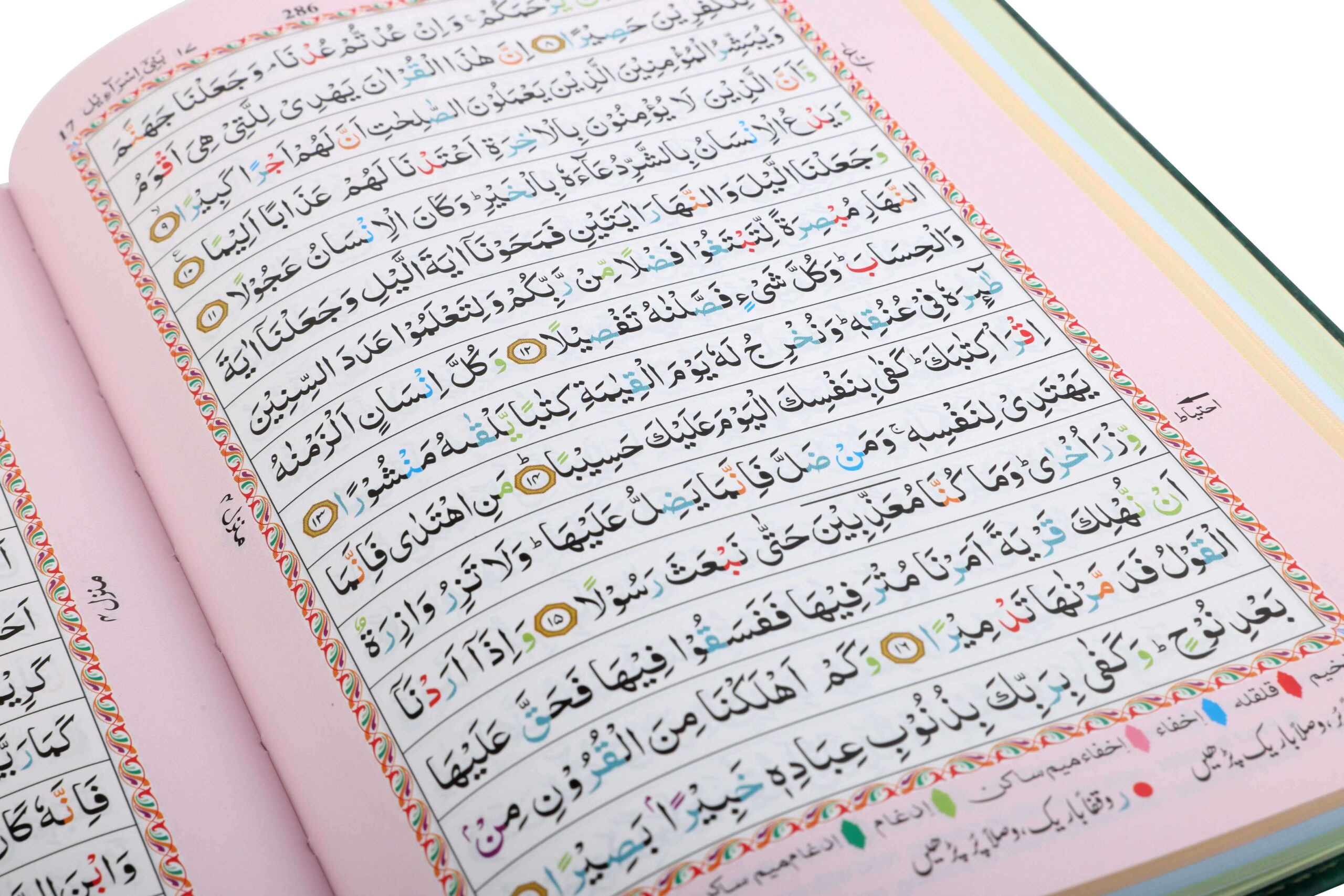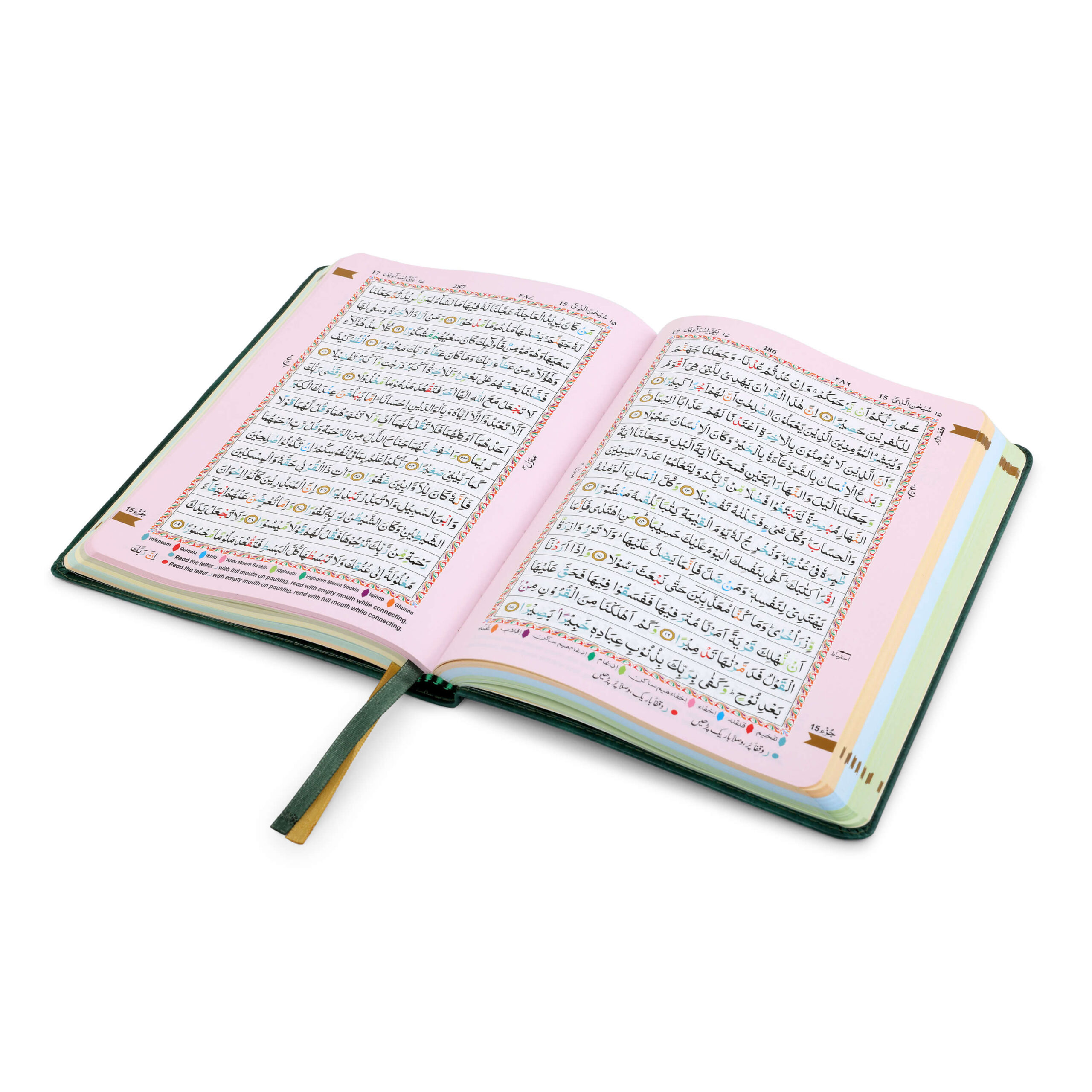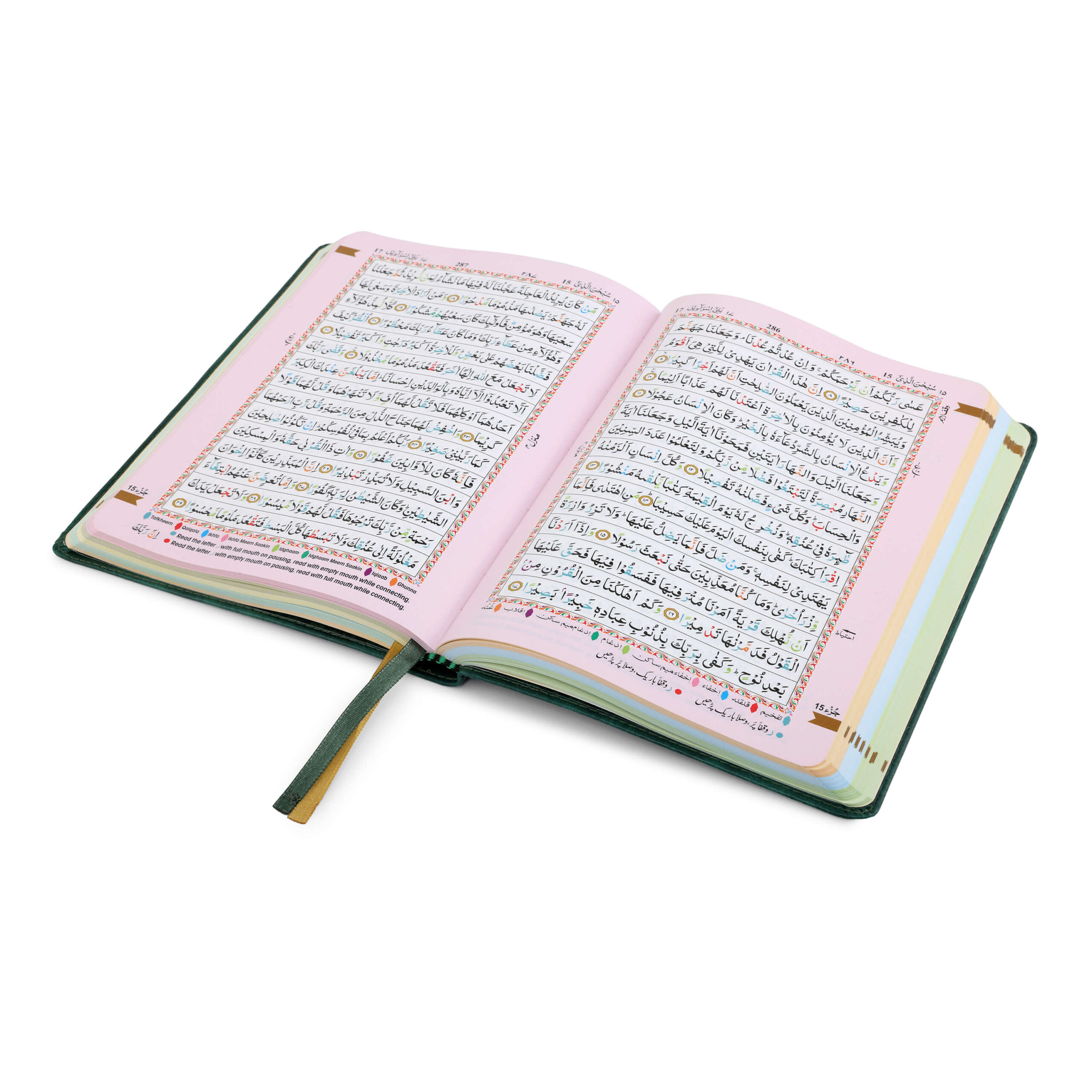 - Colour Coded Tajweed Rules to enhance pronunciation and fluency.