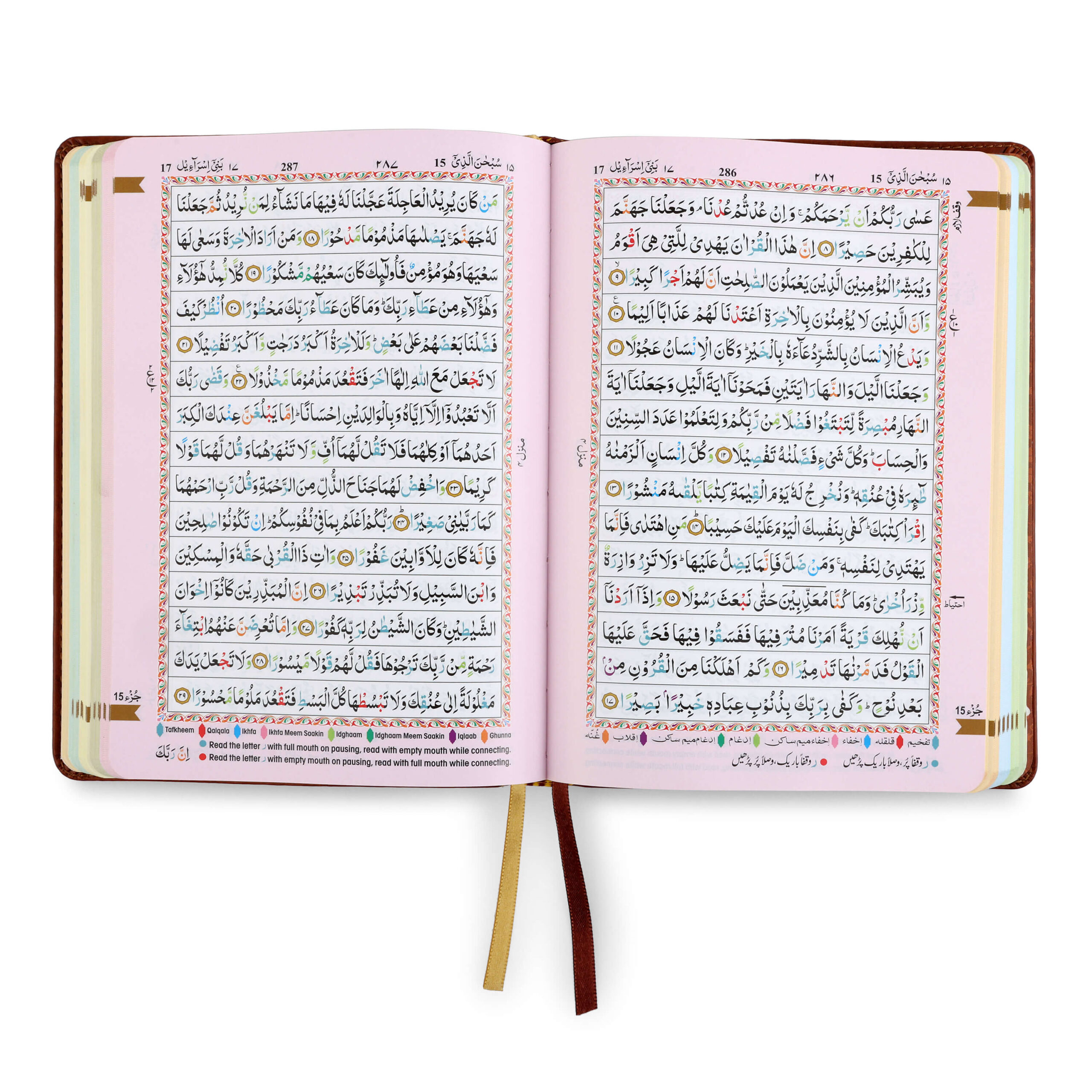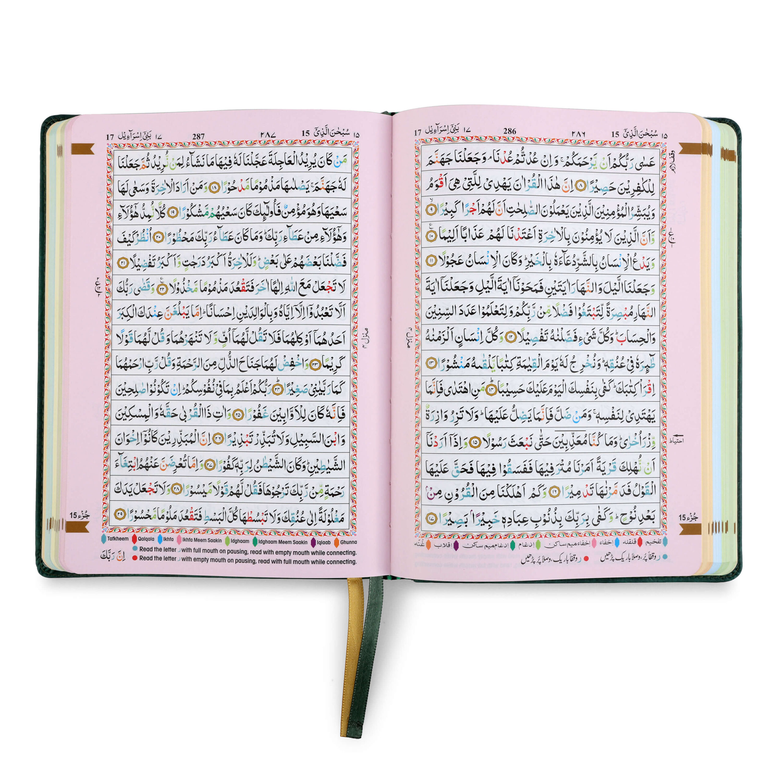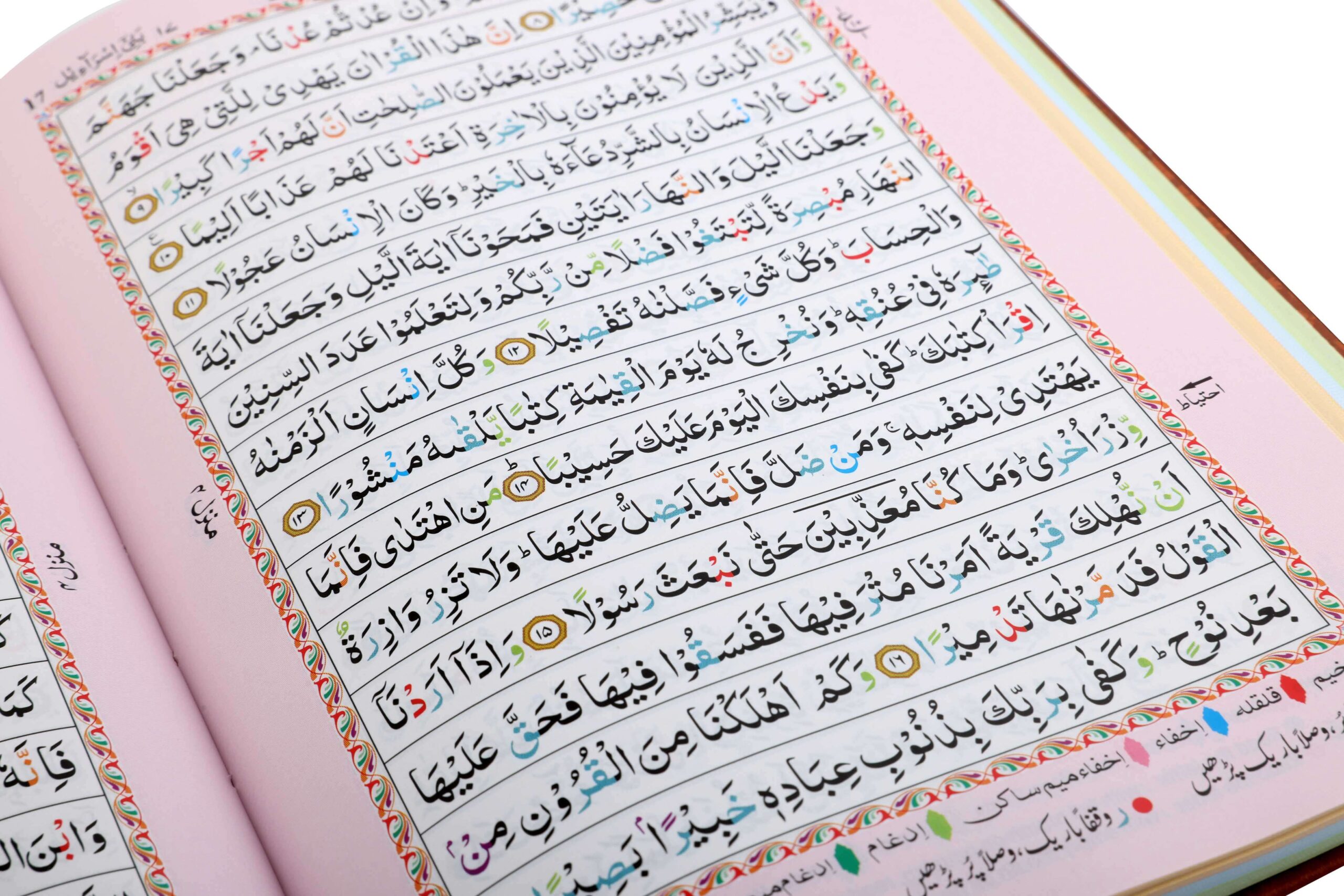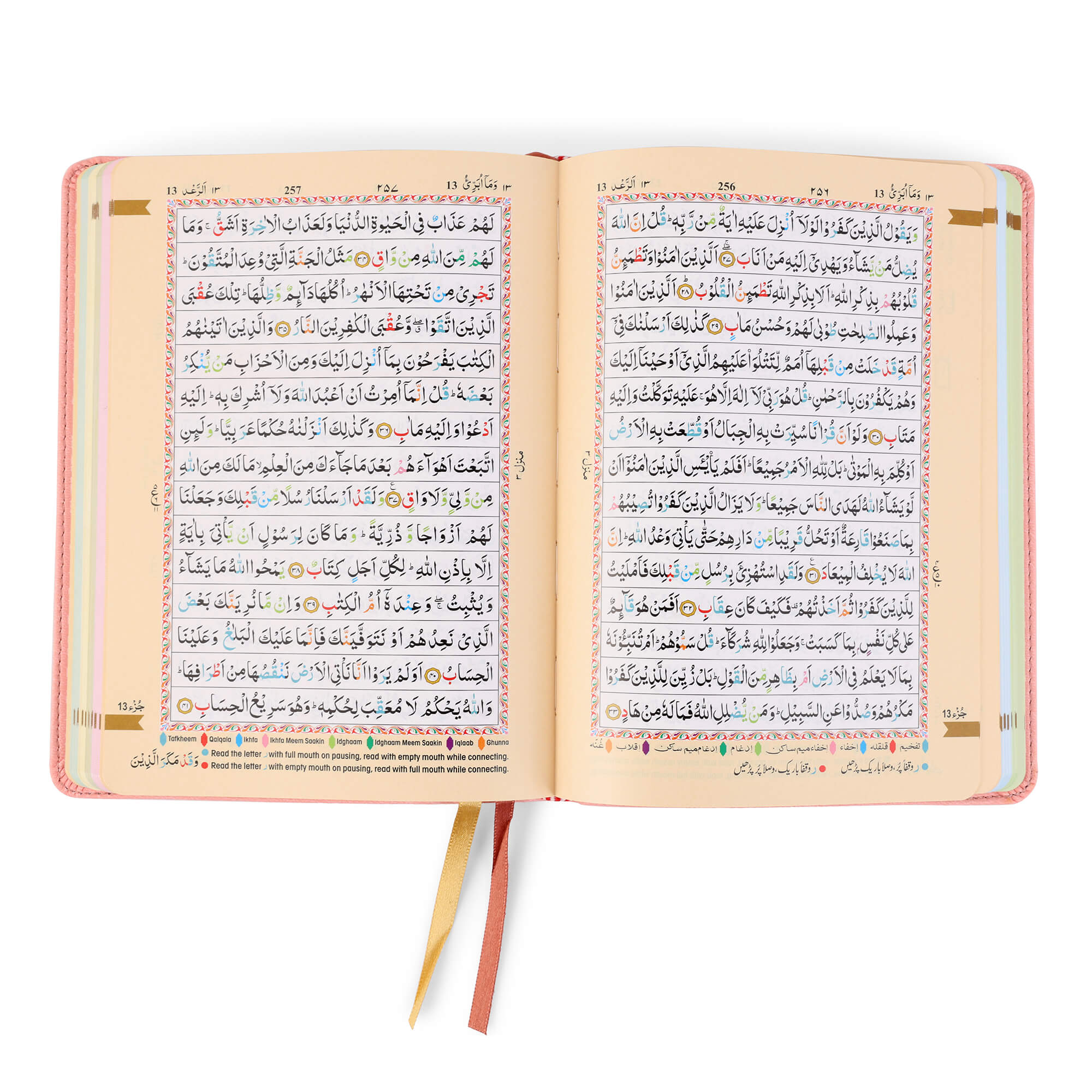 - Colour Coded Tajweed Rules to enhance pronunciation and fluency.