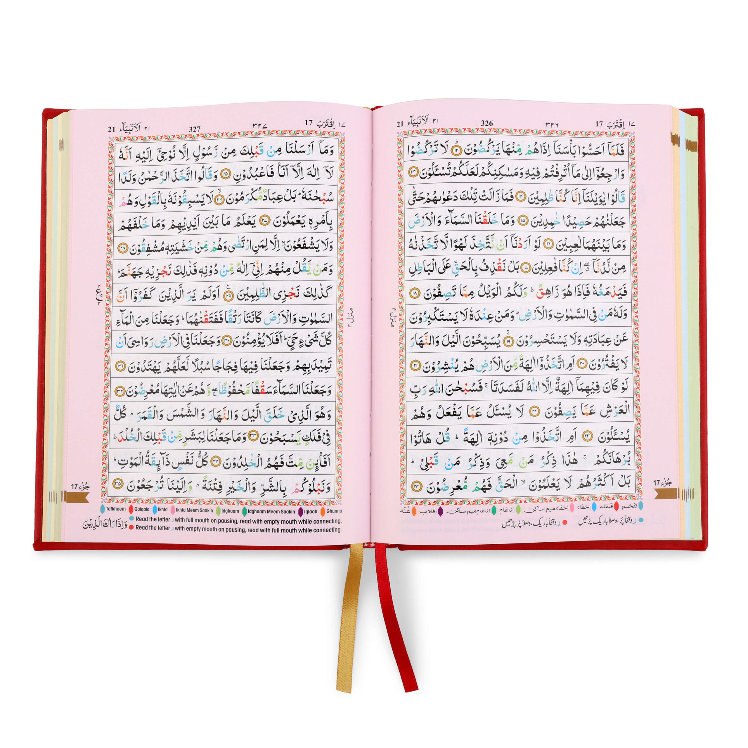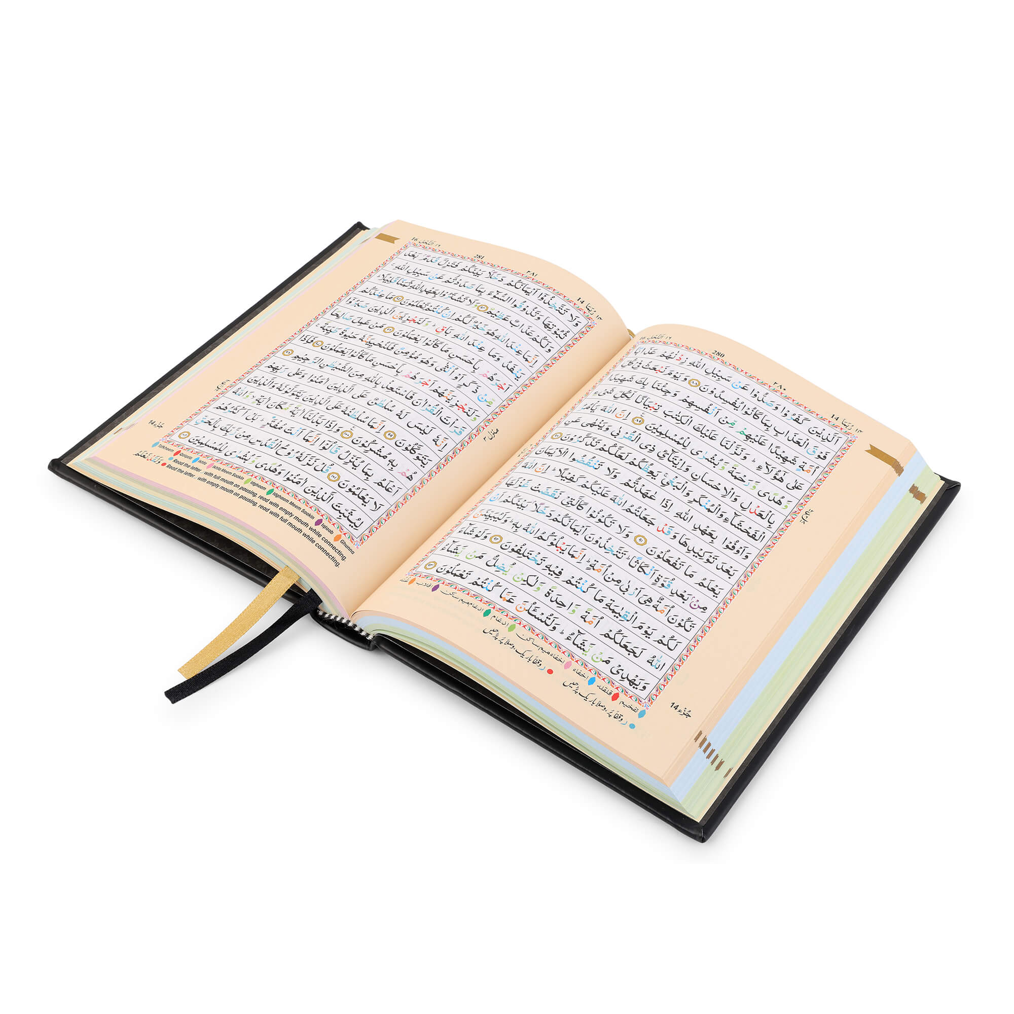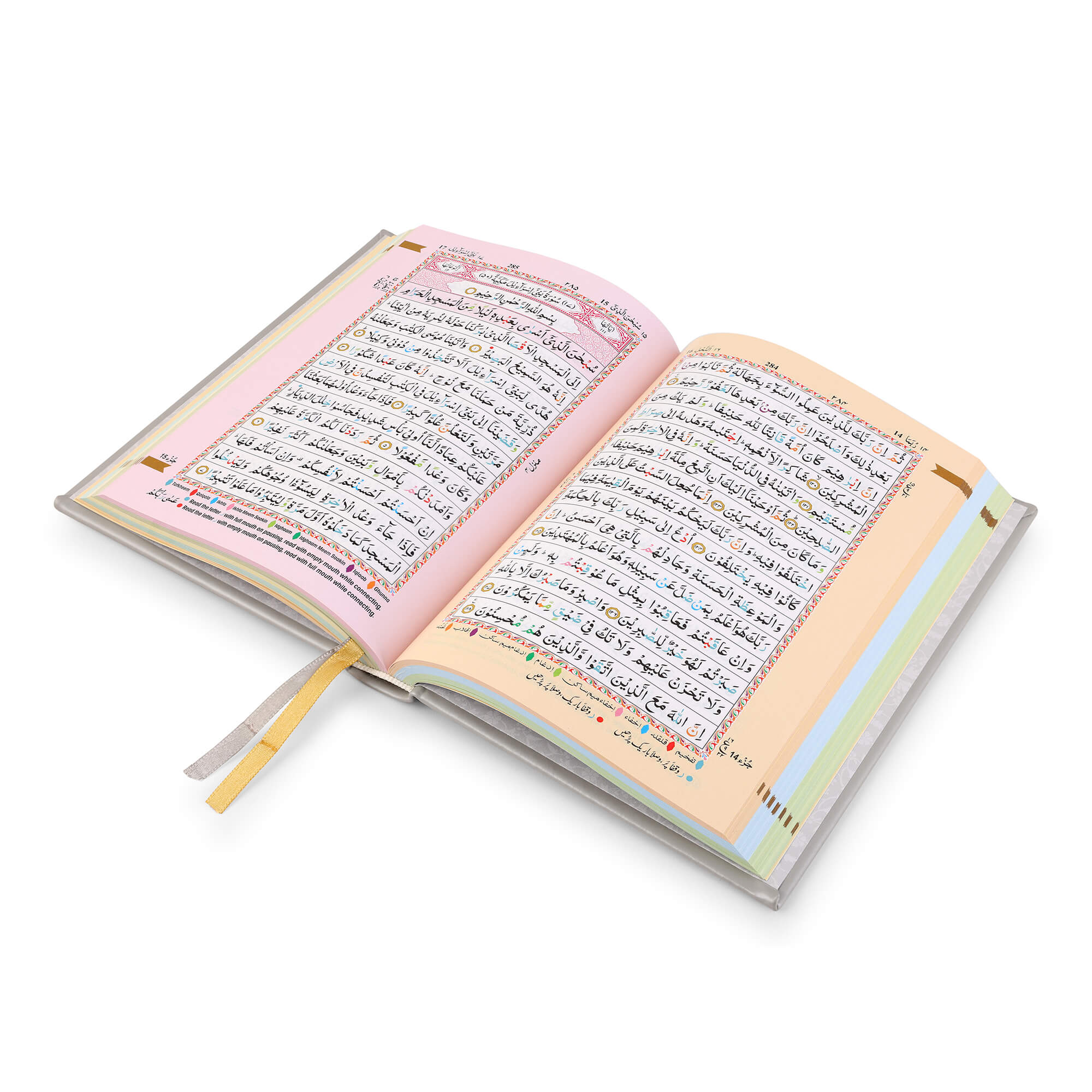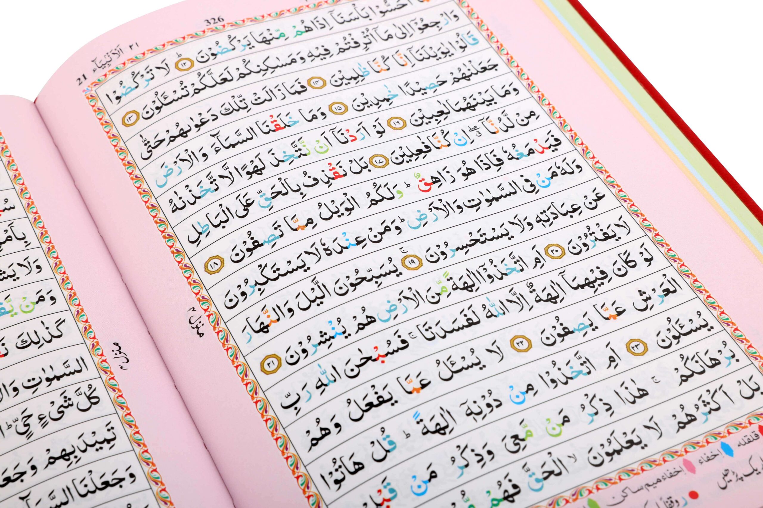 - Colour Coded Tajweed Rules to enhance pronunciation and fluency.
