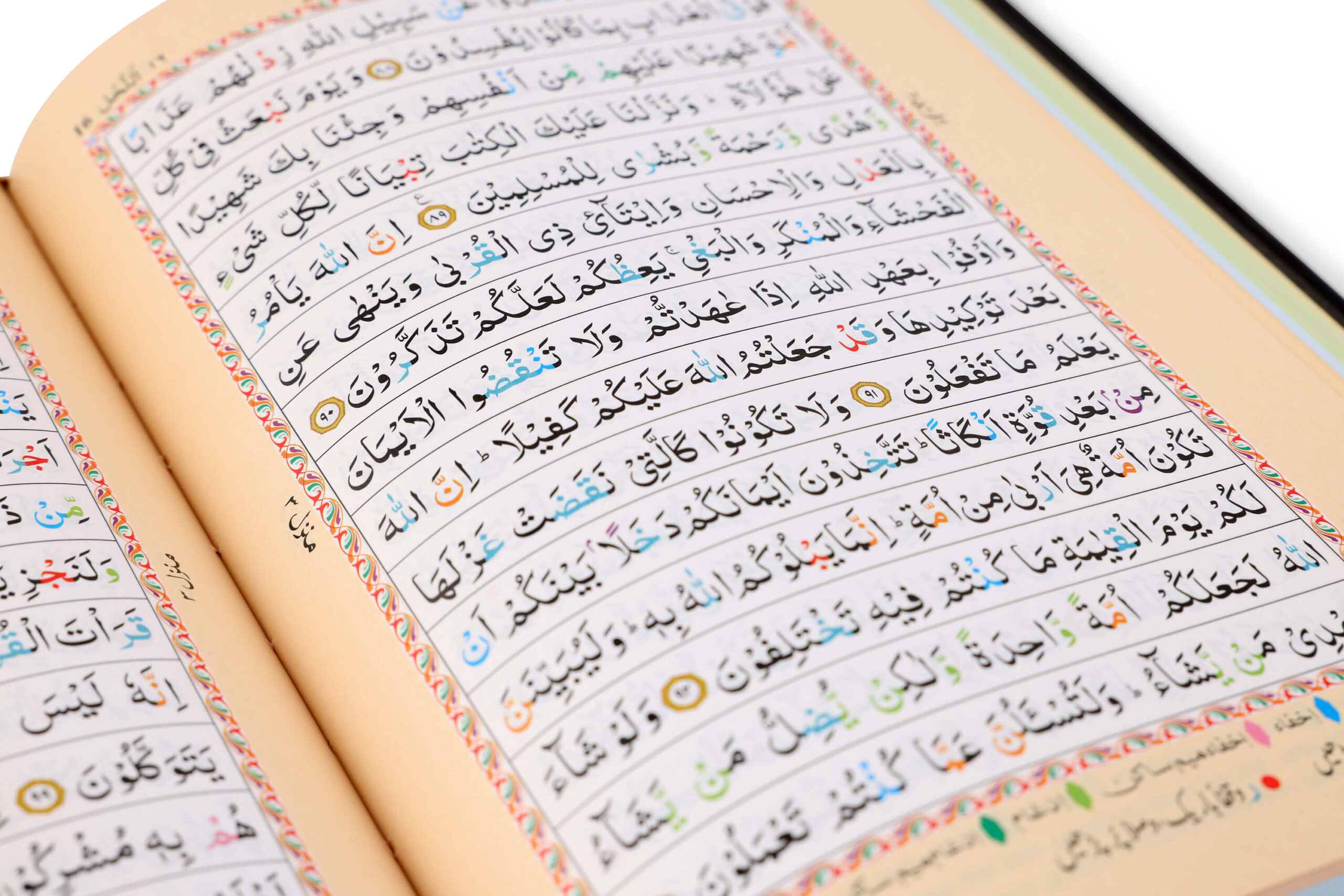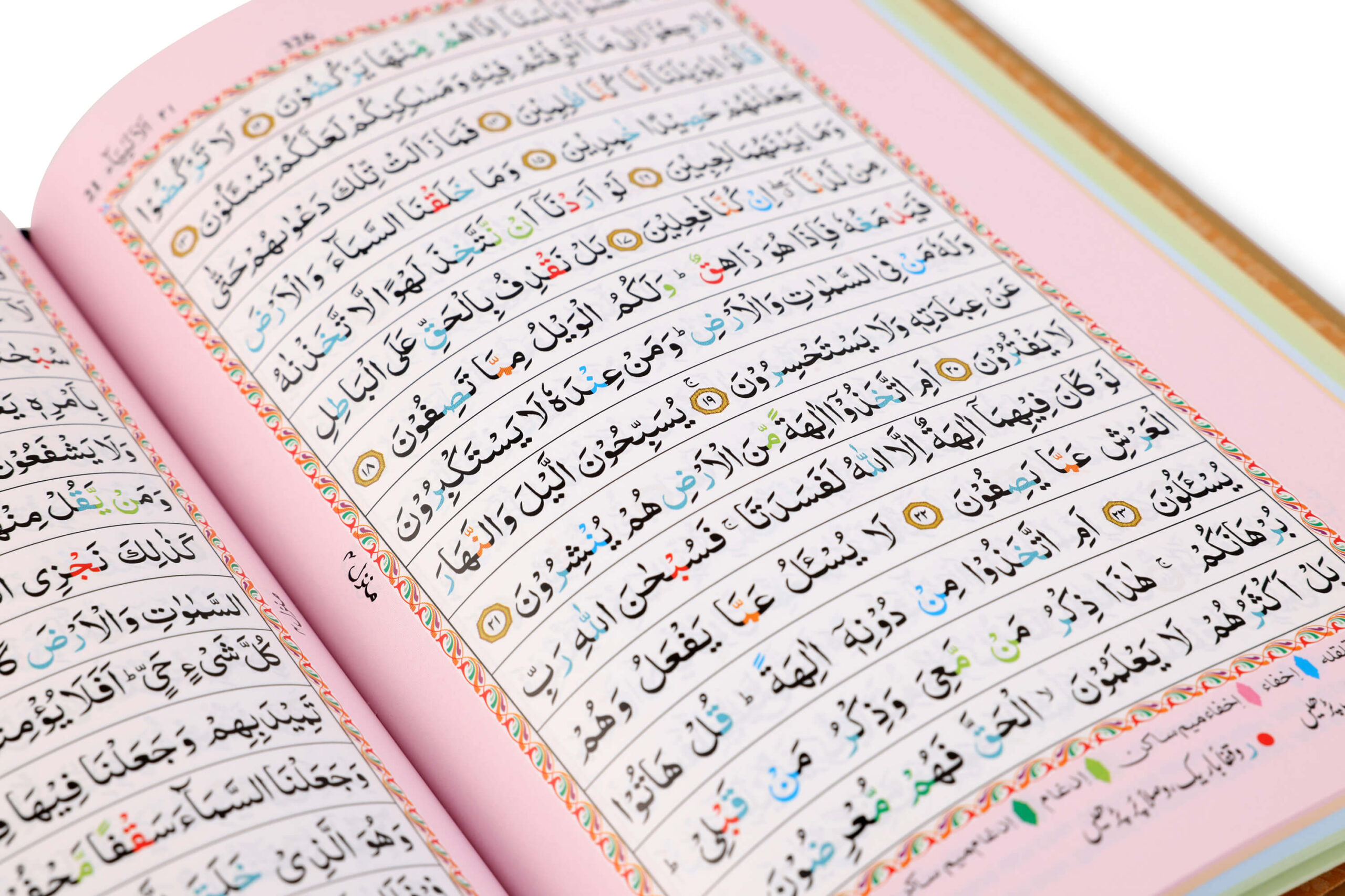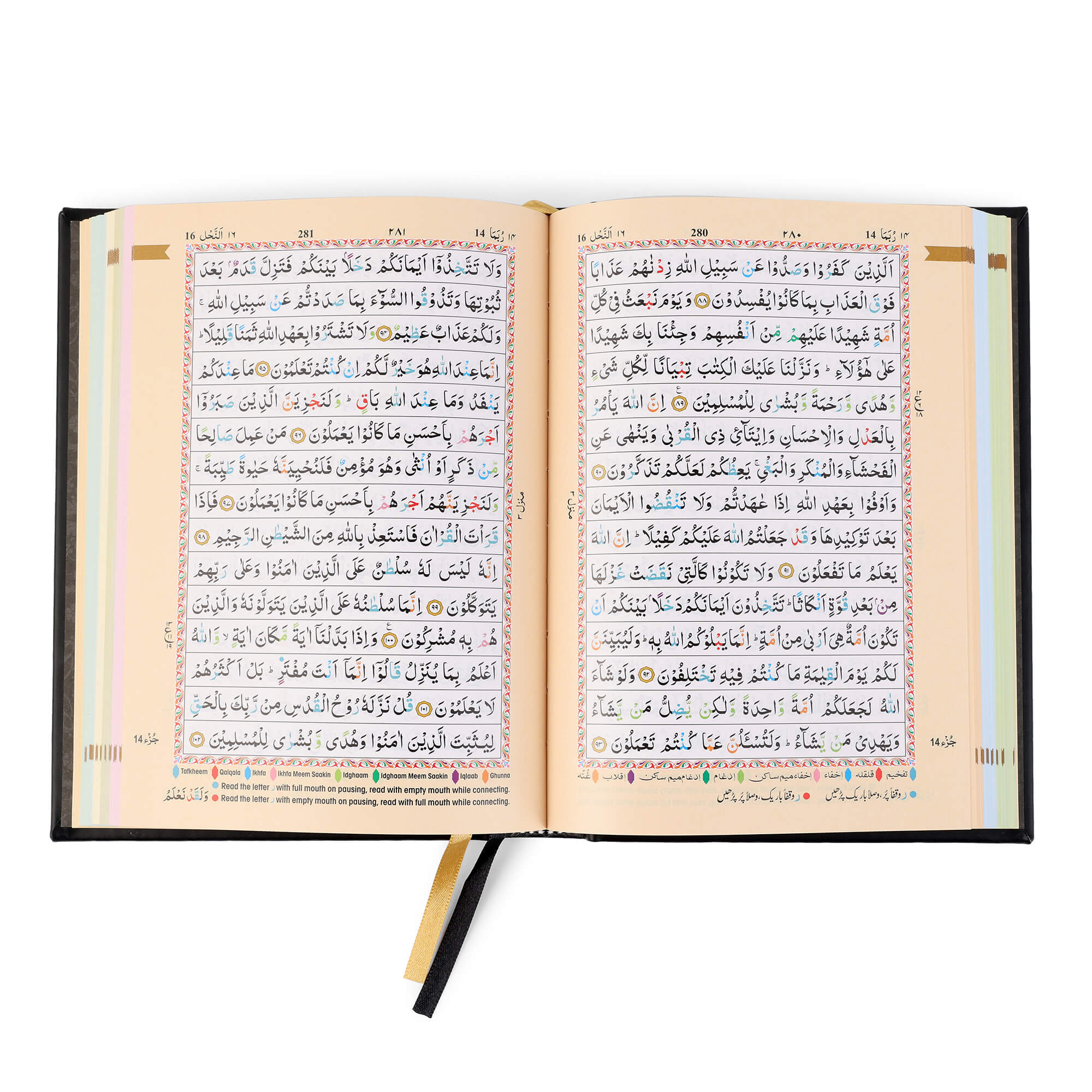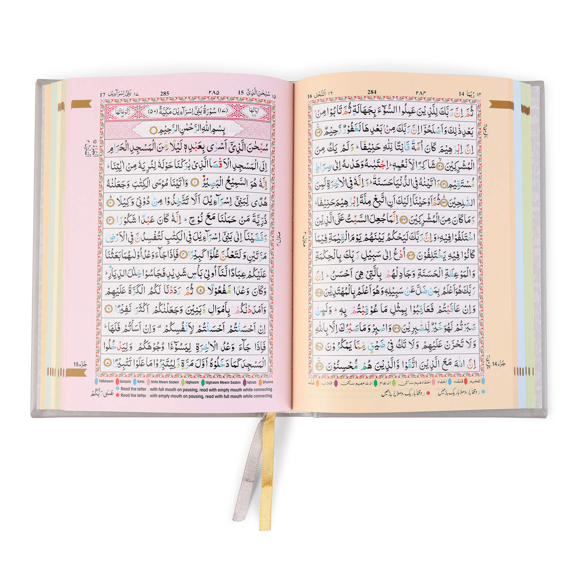 - Colour Coded Tajweed Rules to enhance pronunciation and fluency.