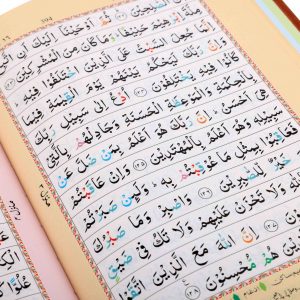 In This Qur’an Seven different color shades have been used and each color represents a Tajweed Rule. The color coding system has been introduced to highlight the Rules of Tajweed found in the Qura’nic text. Having a color block on the Tajweed Rules allows the reciter to emphasize the aCCent, phonetics, rhythm and temper of the Qur’anic recitation. The Holy Book of Quran. Reference Number – 123-CC. Available with Poplin Cover and Color Coded with English Tajweed Rules. Paperback. Readability – 15 lines. (Hafizi Quran)